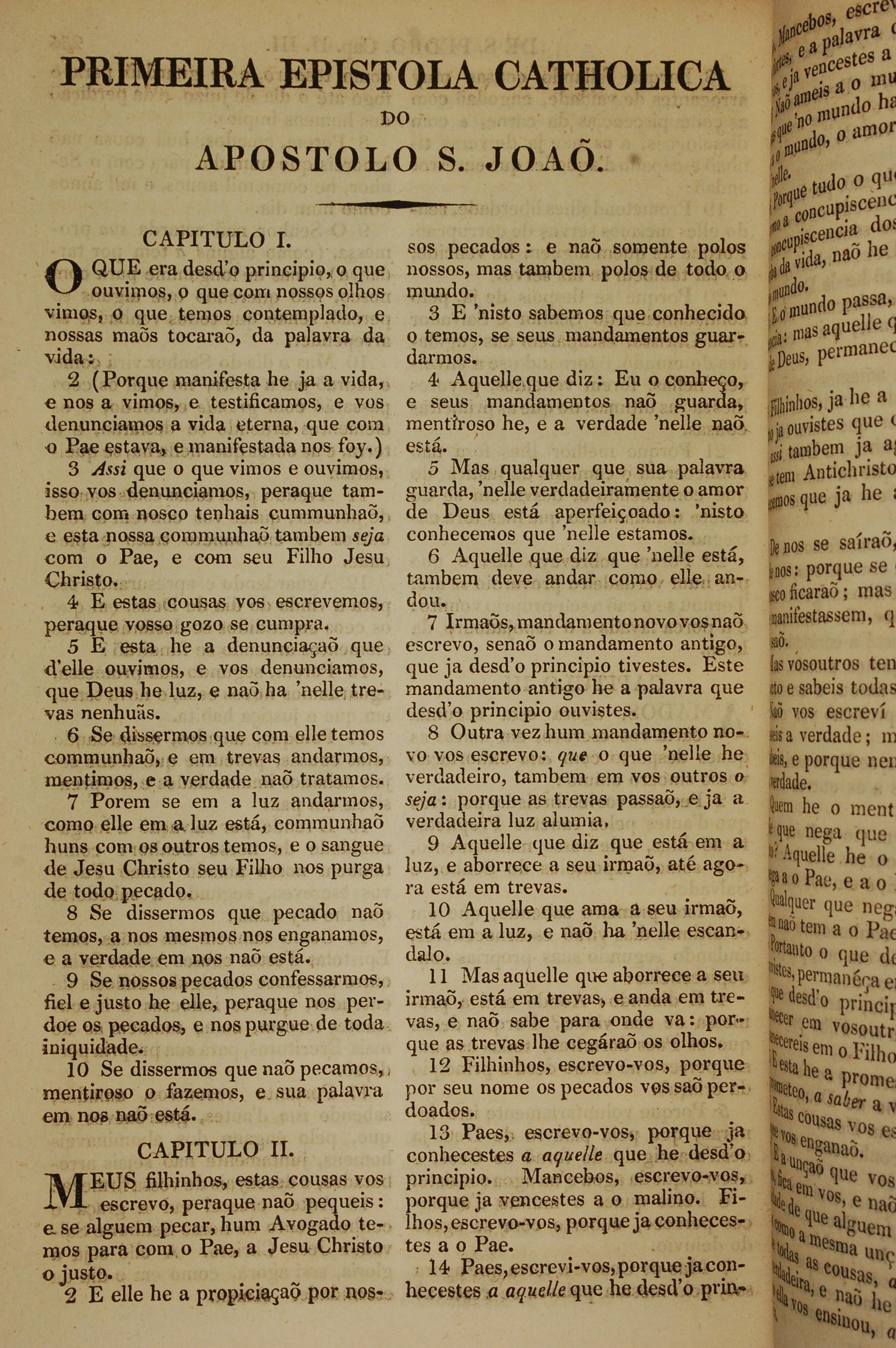 1819年葡萄牙语新约全书 约翰一书 1 章 1 节到 2 章 14 节