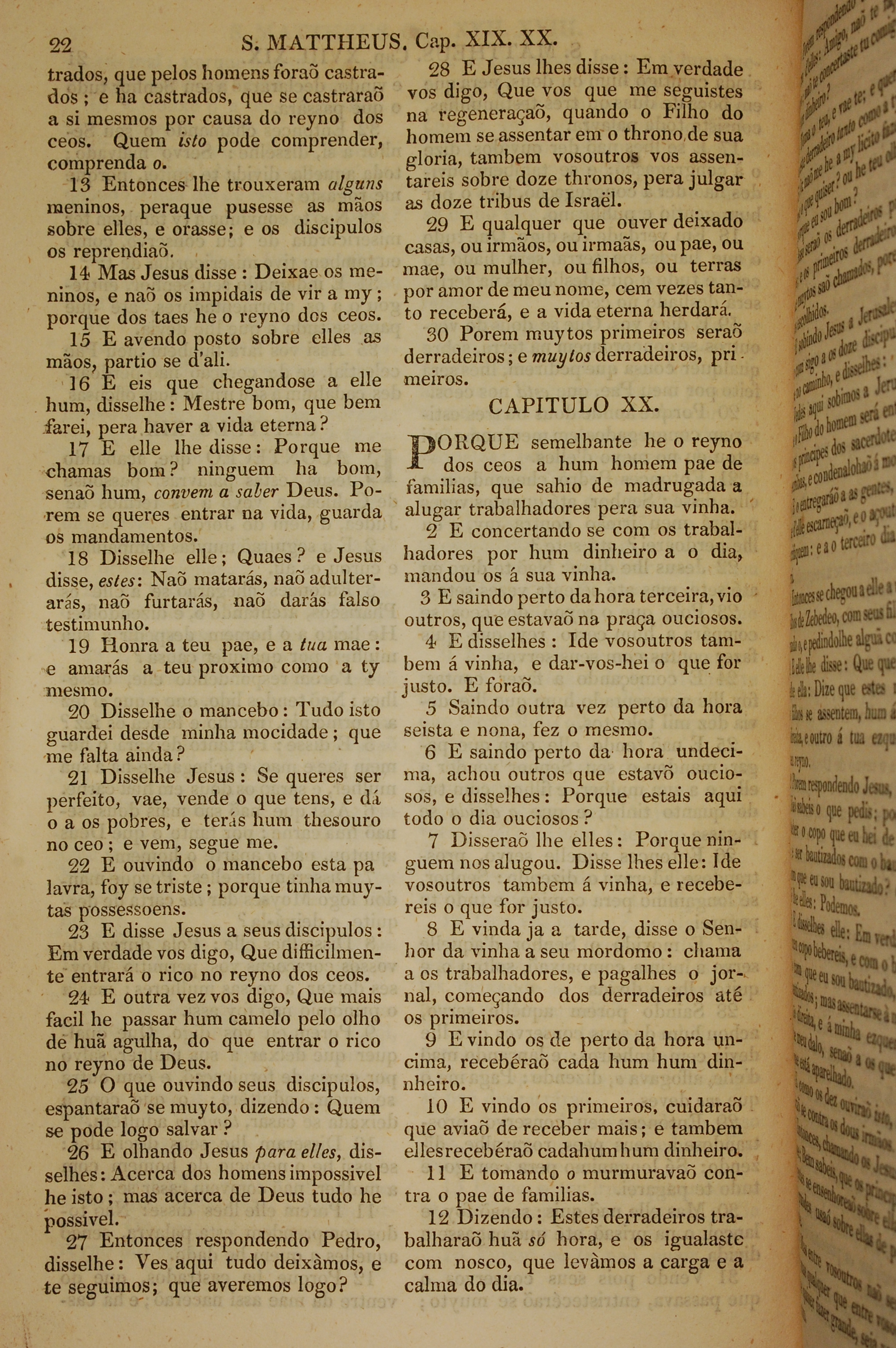 1819年葡萄牙语新约全书 马太福音 19 章 13 节到 20 章 12 节