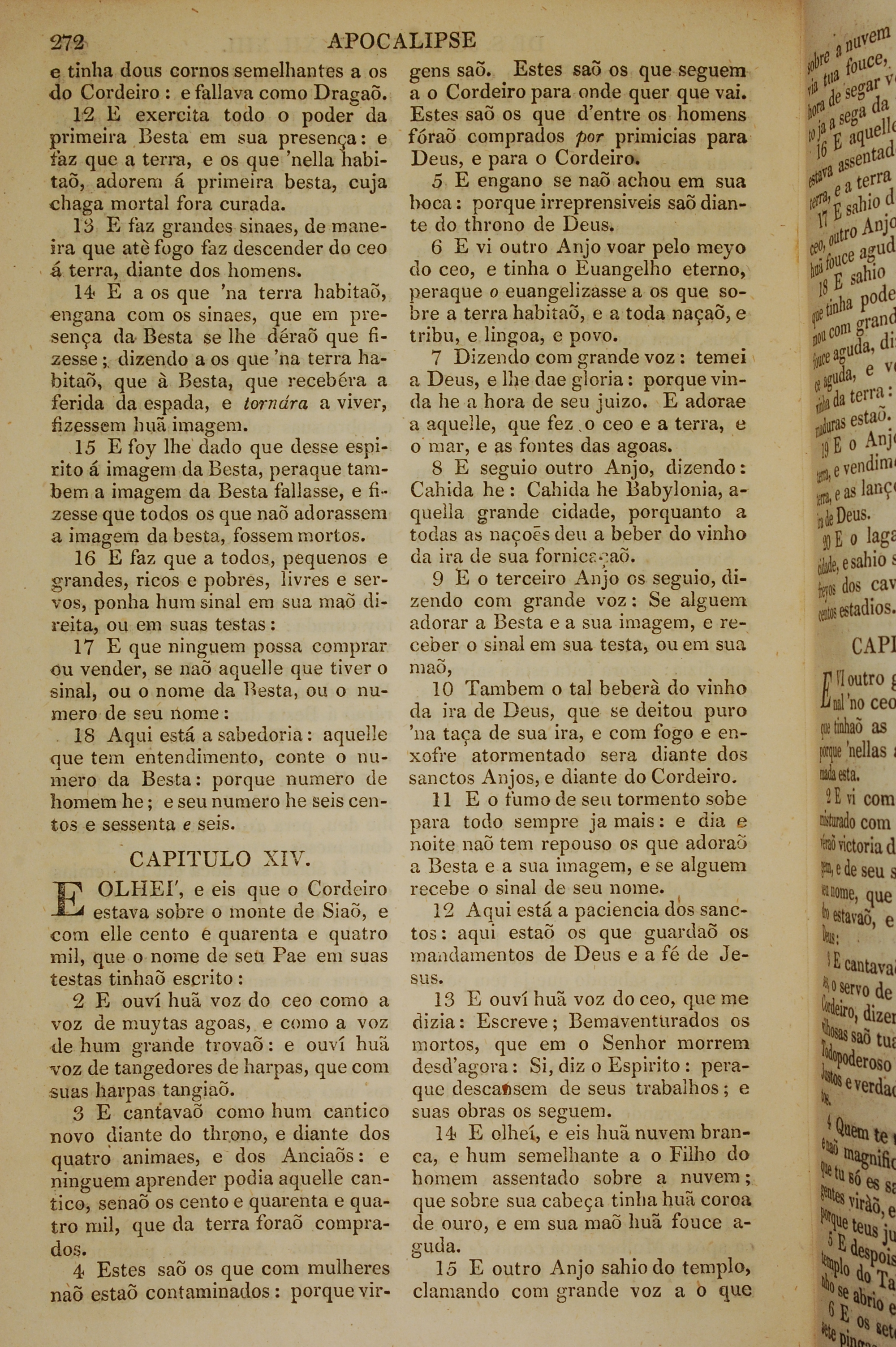 1819年葡萄牙语新约全书 启示录 13 章 12 节到 14 章 15 节