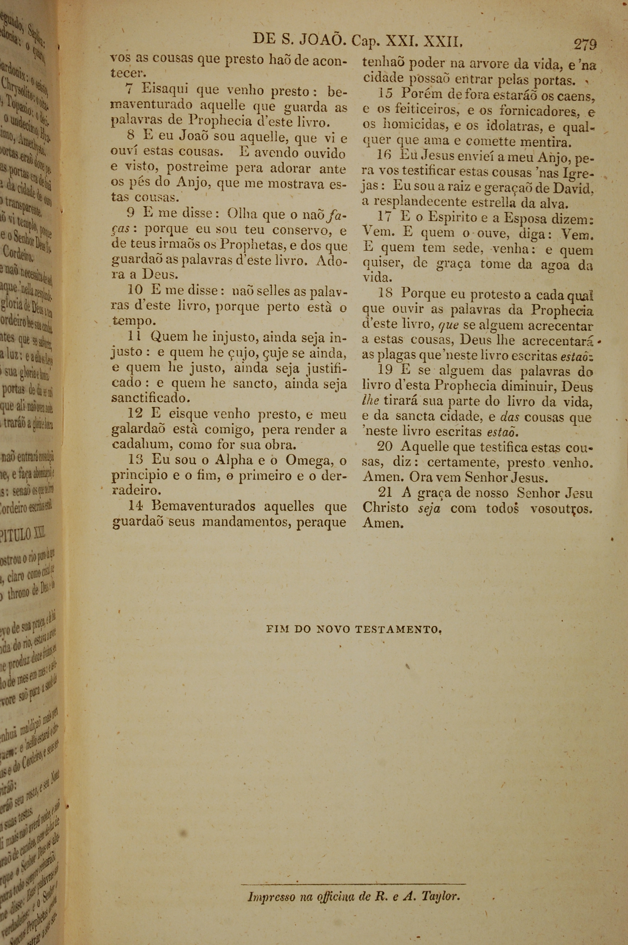 1819年葡萄牙语新约全书 启示录 22 章 7 节到 22 章 21 节