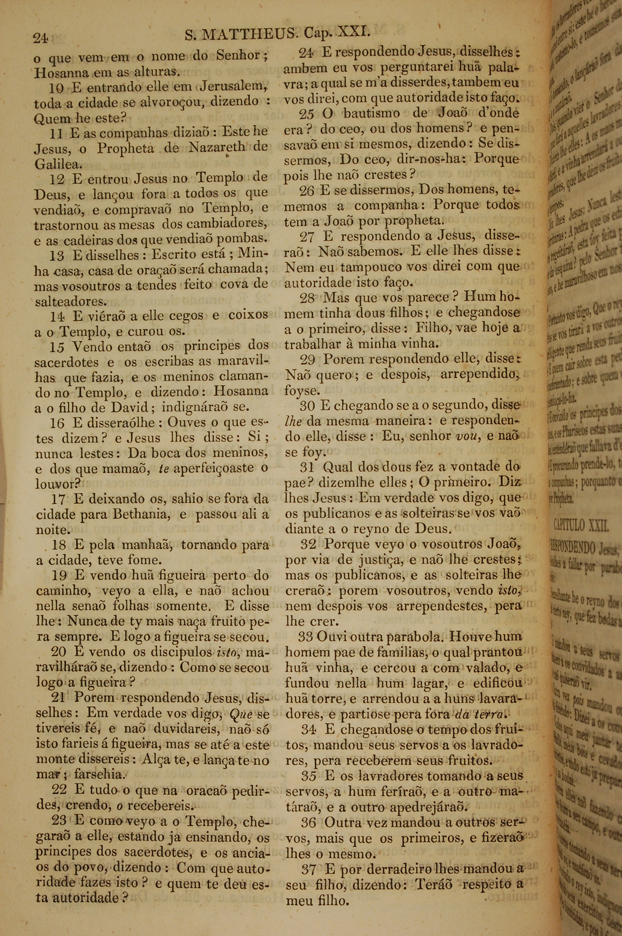 1819年葡萄牙语新约全书 马太福音 21 章 10 节到 21 章 37 节