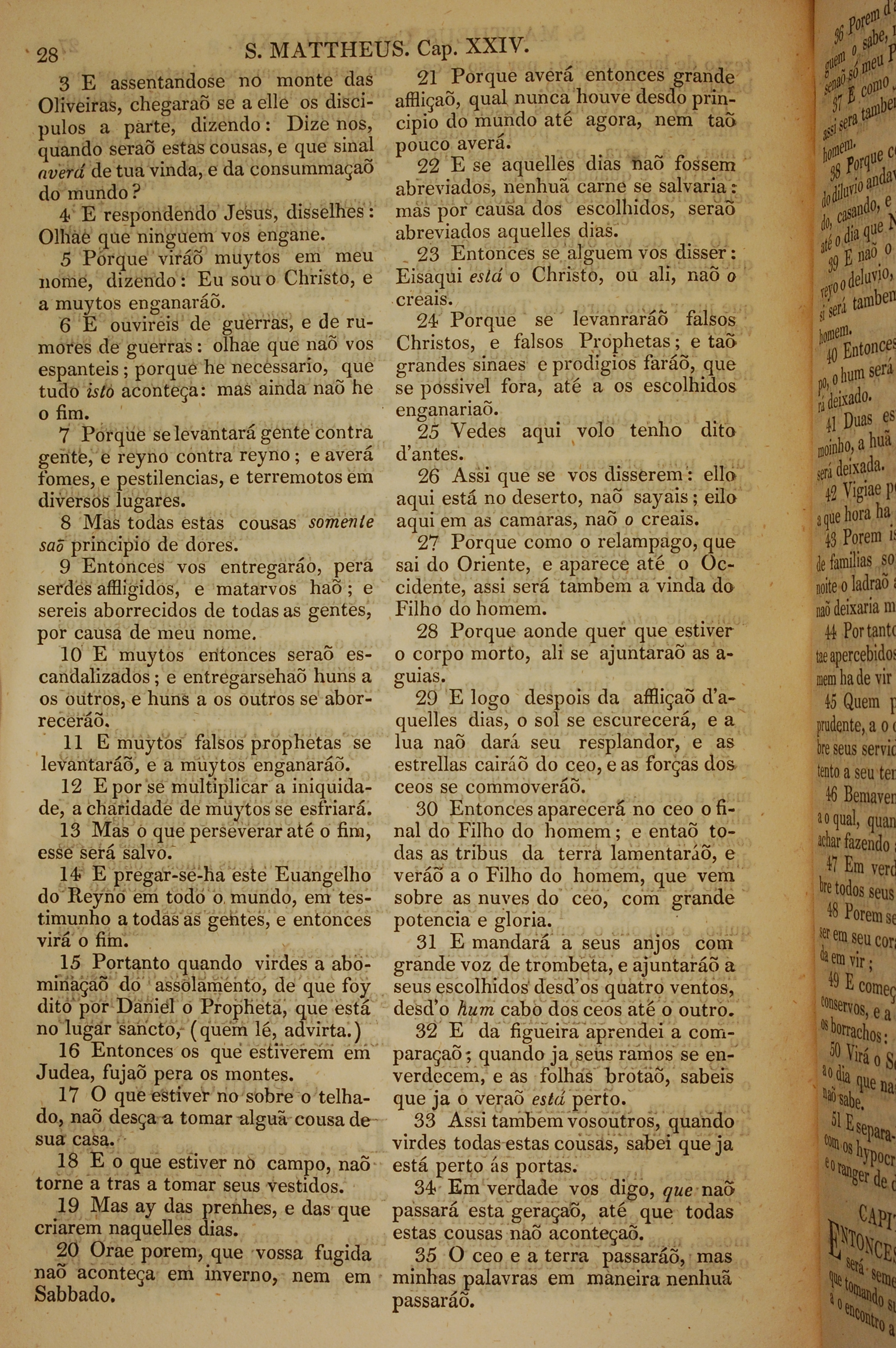 1819年葡萄牙语新约全书 马太福音 24 章 3 节到 24 章 35 节