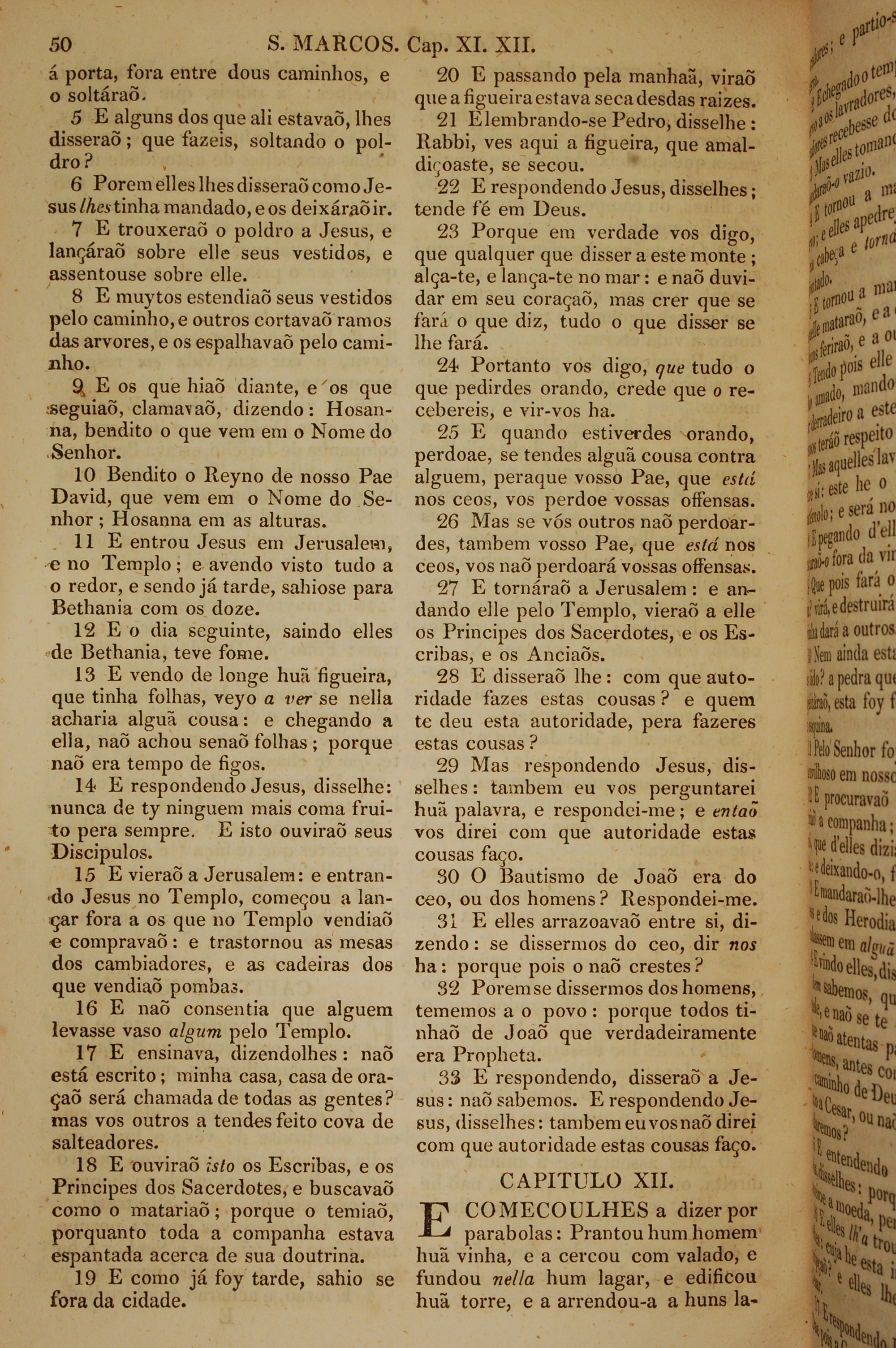 1819年葡萄牙语新约全书 马可福音 11 章 5 节到 12 章 1 节