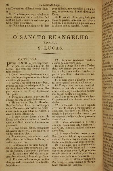 1819年葡萄牙语新约全书 路加福音 1 章 1 节到 1 章 21 节
