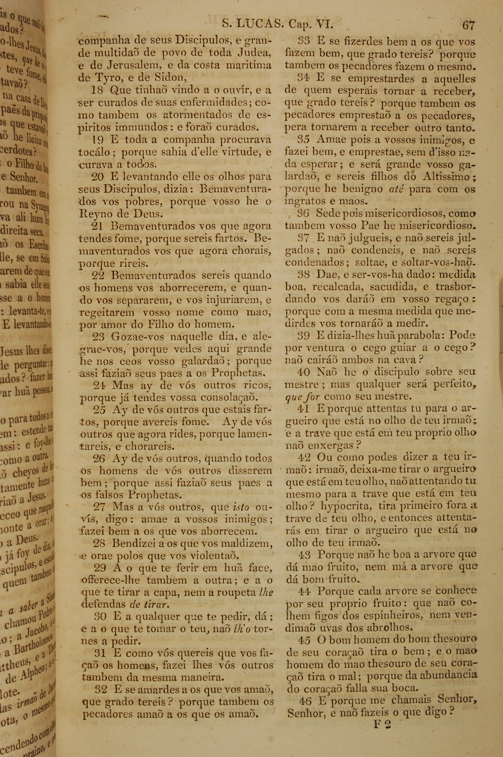 1819年葡萄牙语新约全书 路加福音 6 章 18 节到 6 章 46 节
