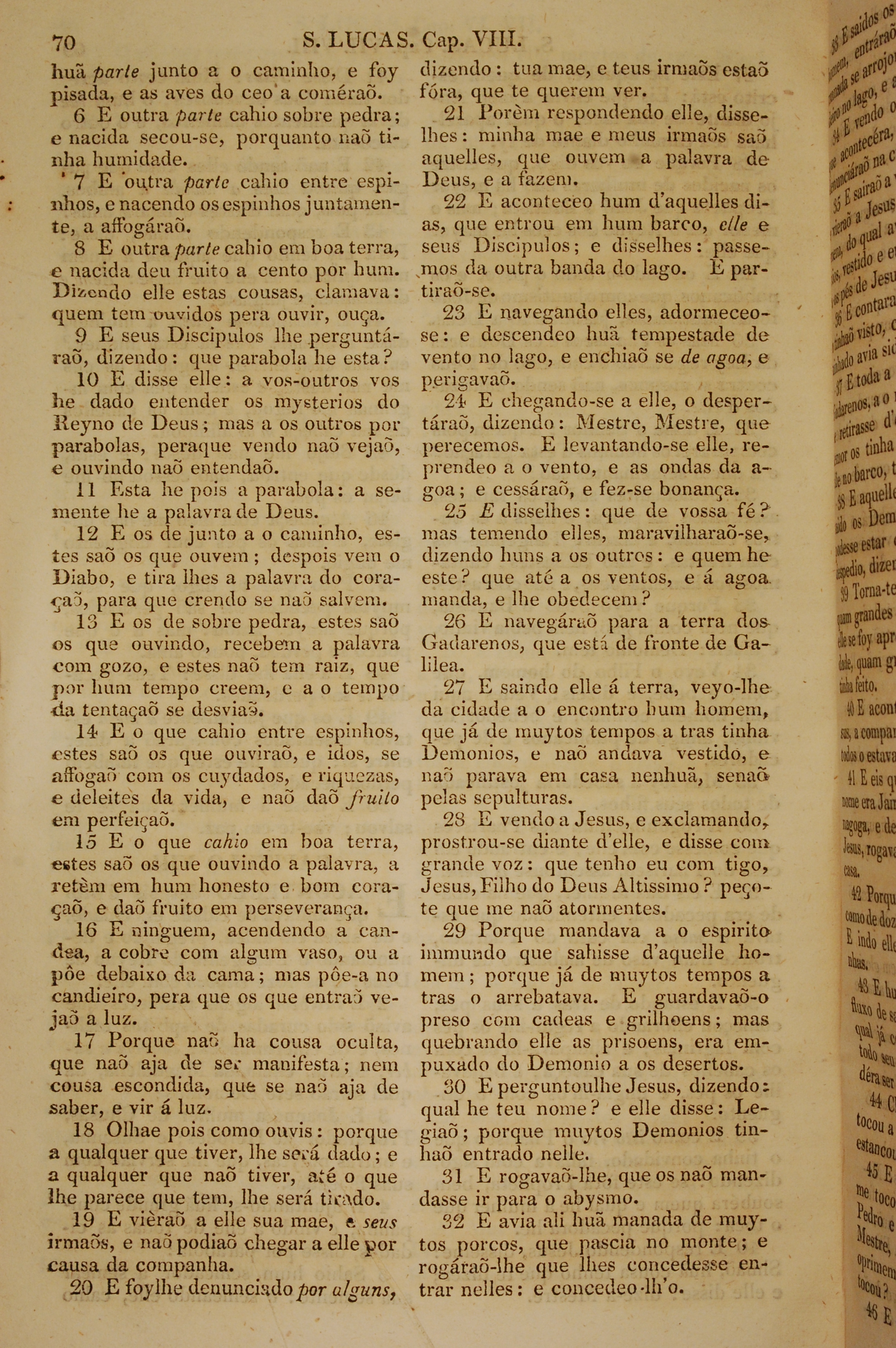1819年葡萄牙语新约全书 路加福音 8 章 6 节到 8 章 32 节