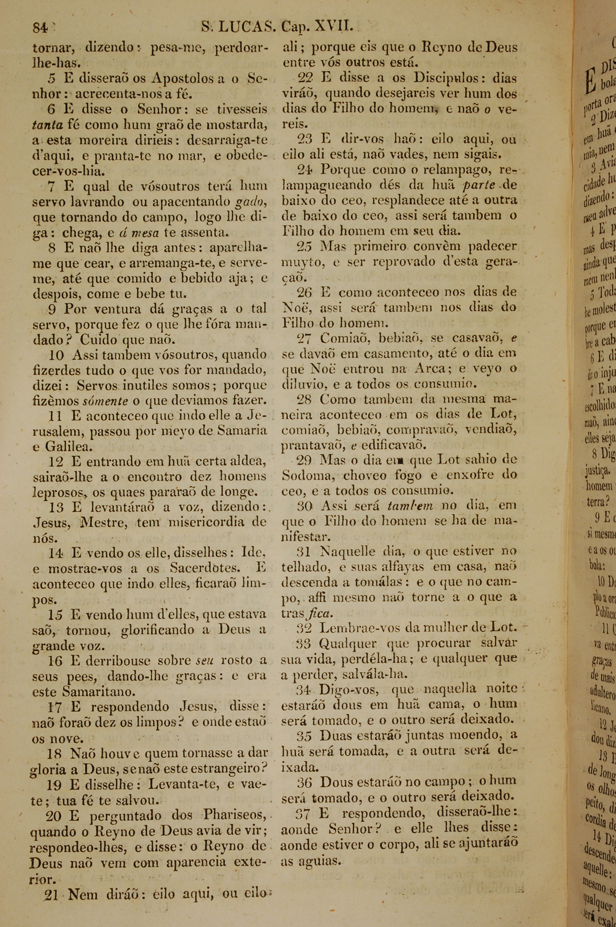 1819年葡萄牙语新约全书 路加福音 17 章 5 节到 17 章 37 节