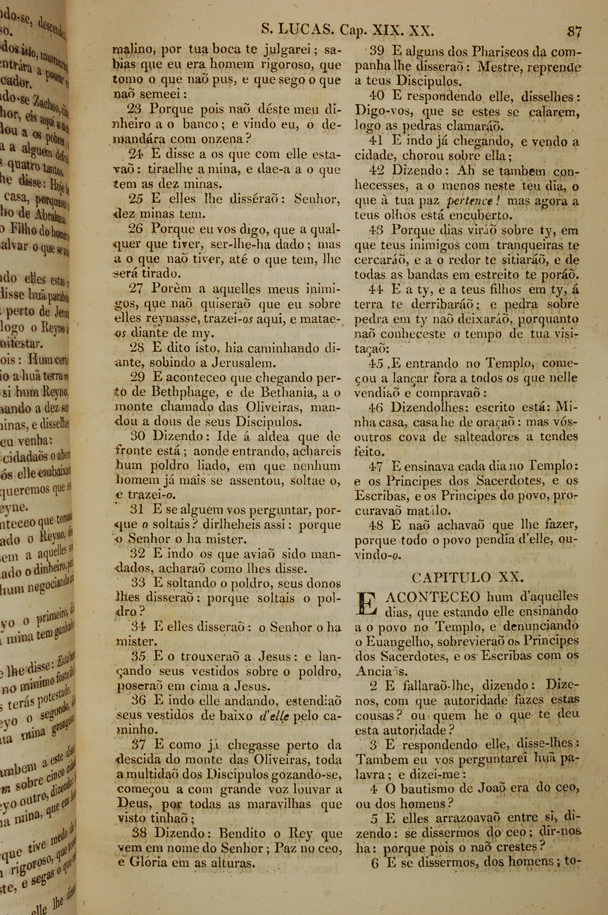 1819年葡萄牙语新约全书 路加福音 19 章 23 节到 20 章 6 节