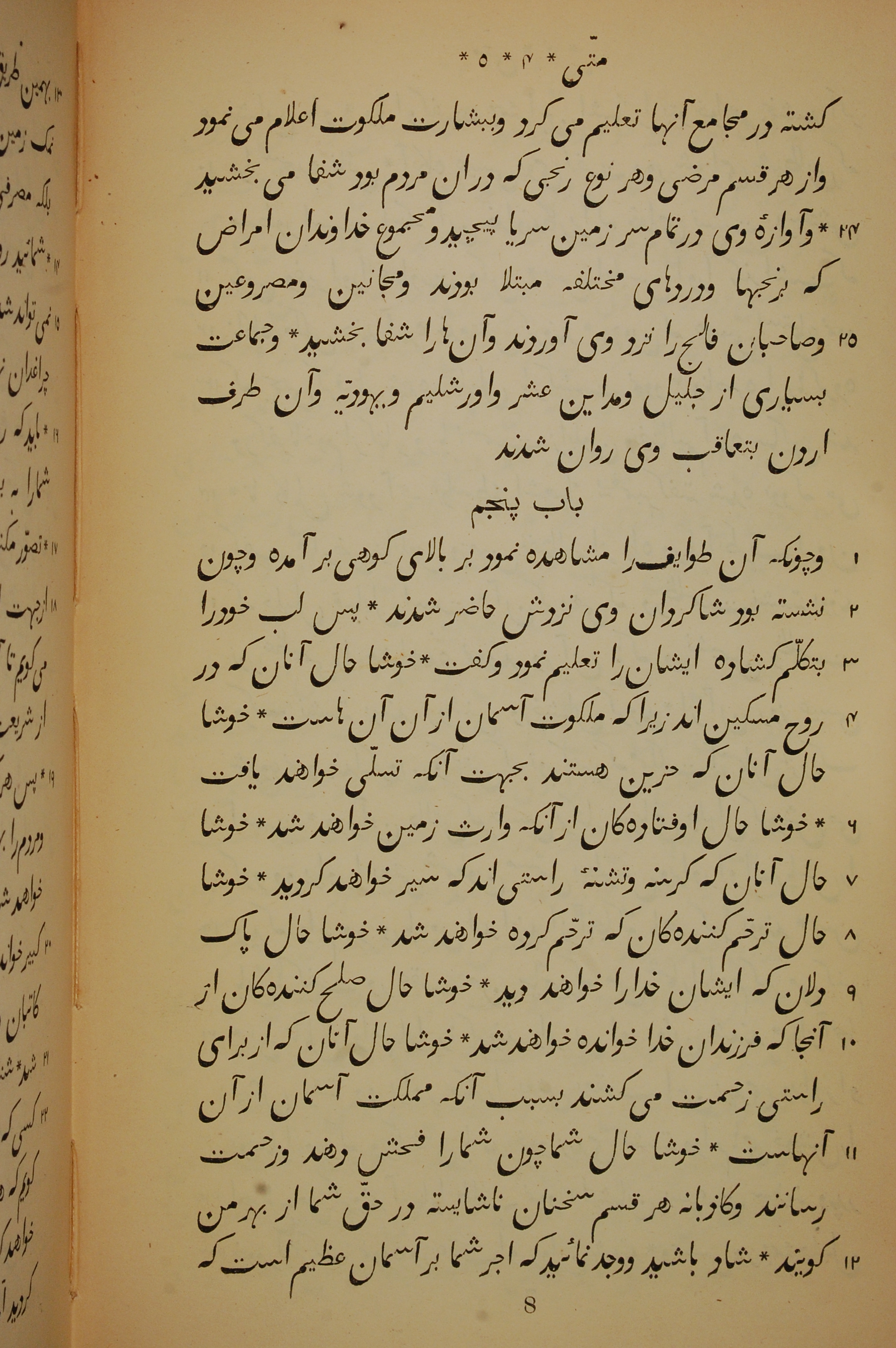 1837年New Testament Translated From the Original Greek into Persian 马太福音 4 章 24 节到 5 章 12 节