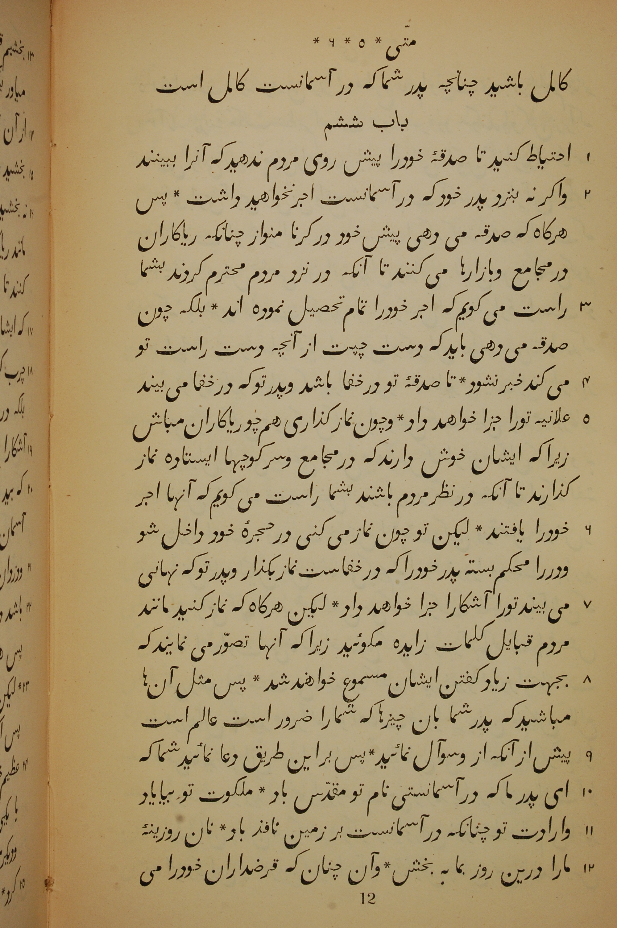 1837年New Testament Translated From the Original Greek into Persian 马太福音 6 章 1 节到 6 章 12 节