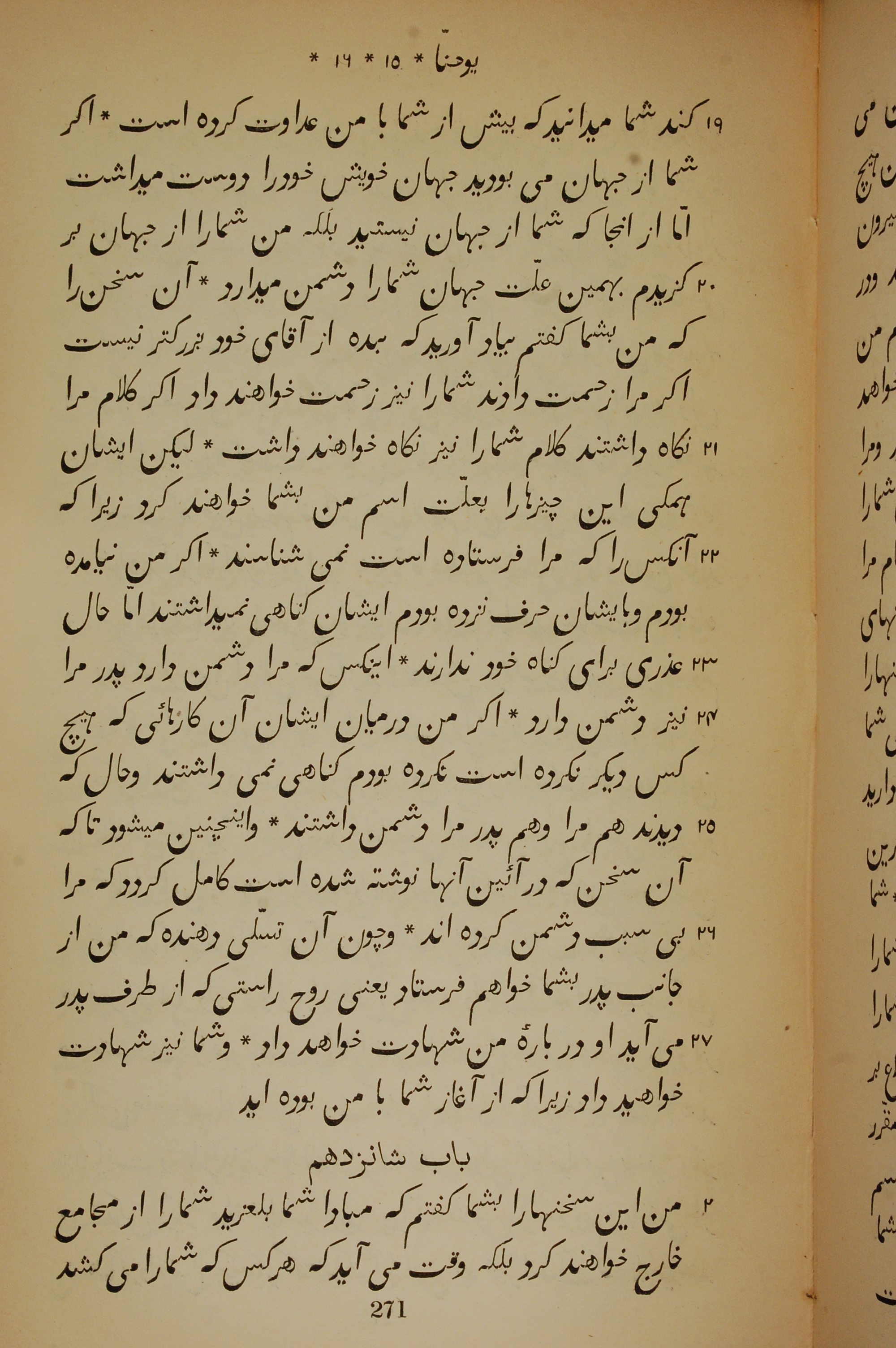 1837年New Testament Translated From the Original Greek into Persian 约翰福音 15 章 19 节到 16 章 2 节