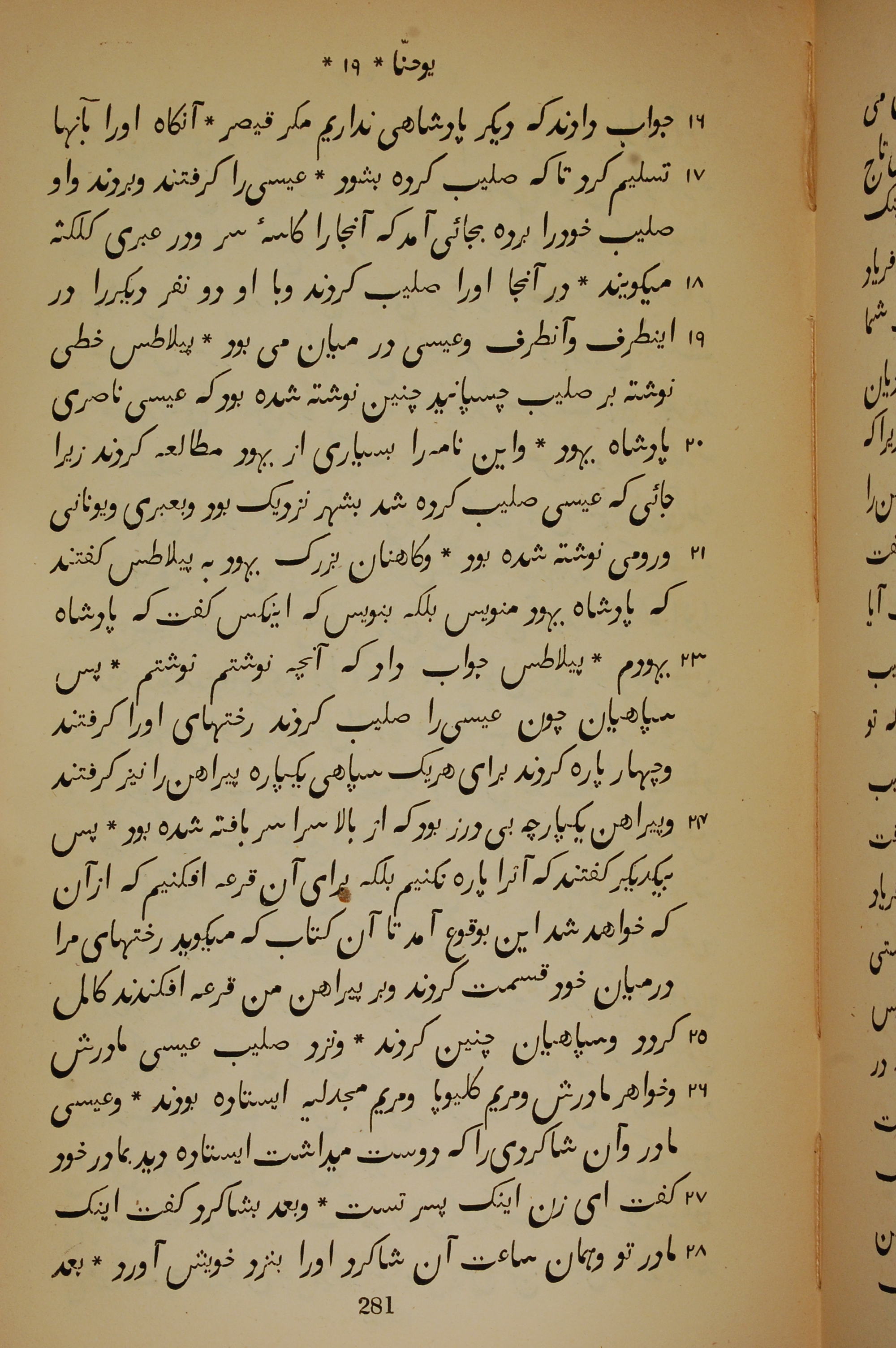 1837年New Testament Translated From the Original Greek into Persian 约翰福音 19 章 16 节到 19 章 28 节