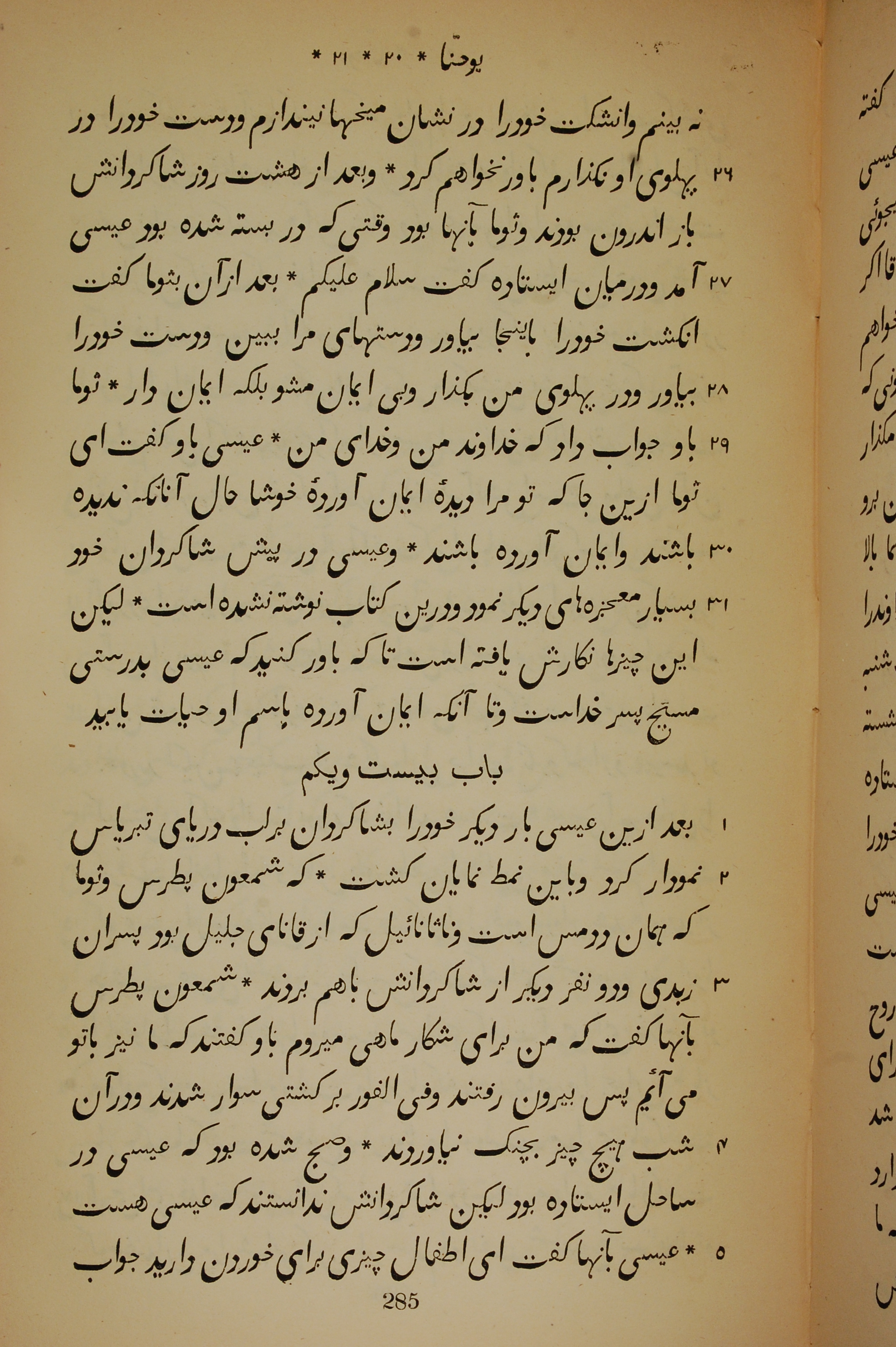 1837年New Testament Translated From the Original Greek into Persian 约翰福音 20 章 26 节到 21 章 5 节
