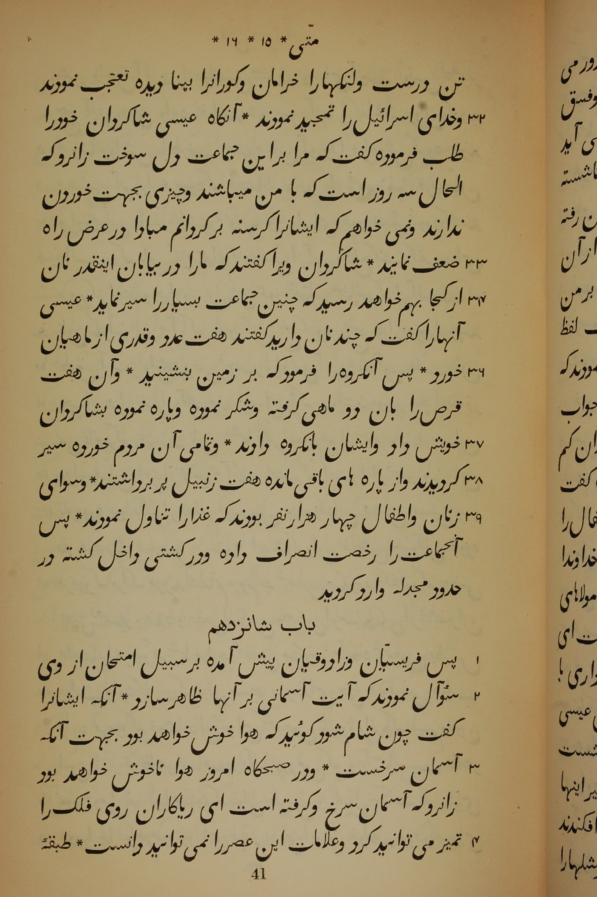 1837年New Testament Translated From the Original Greek into Persian 马太福音 15 章 32 节到 16 章 4 节