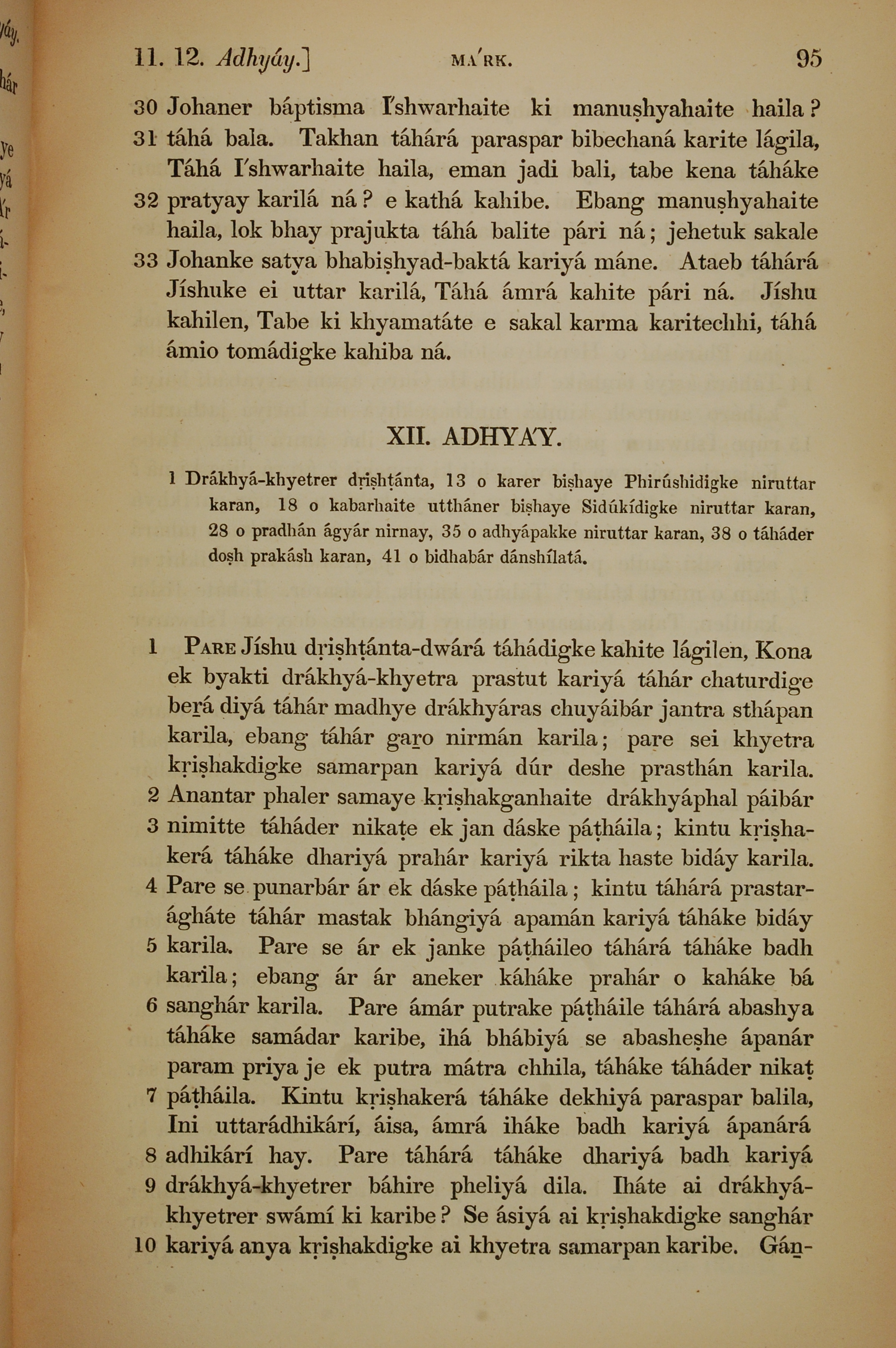 1839年孟加拉语新约全书 马可福音 11 章 30 节到 12 章 10 节