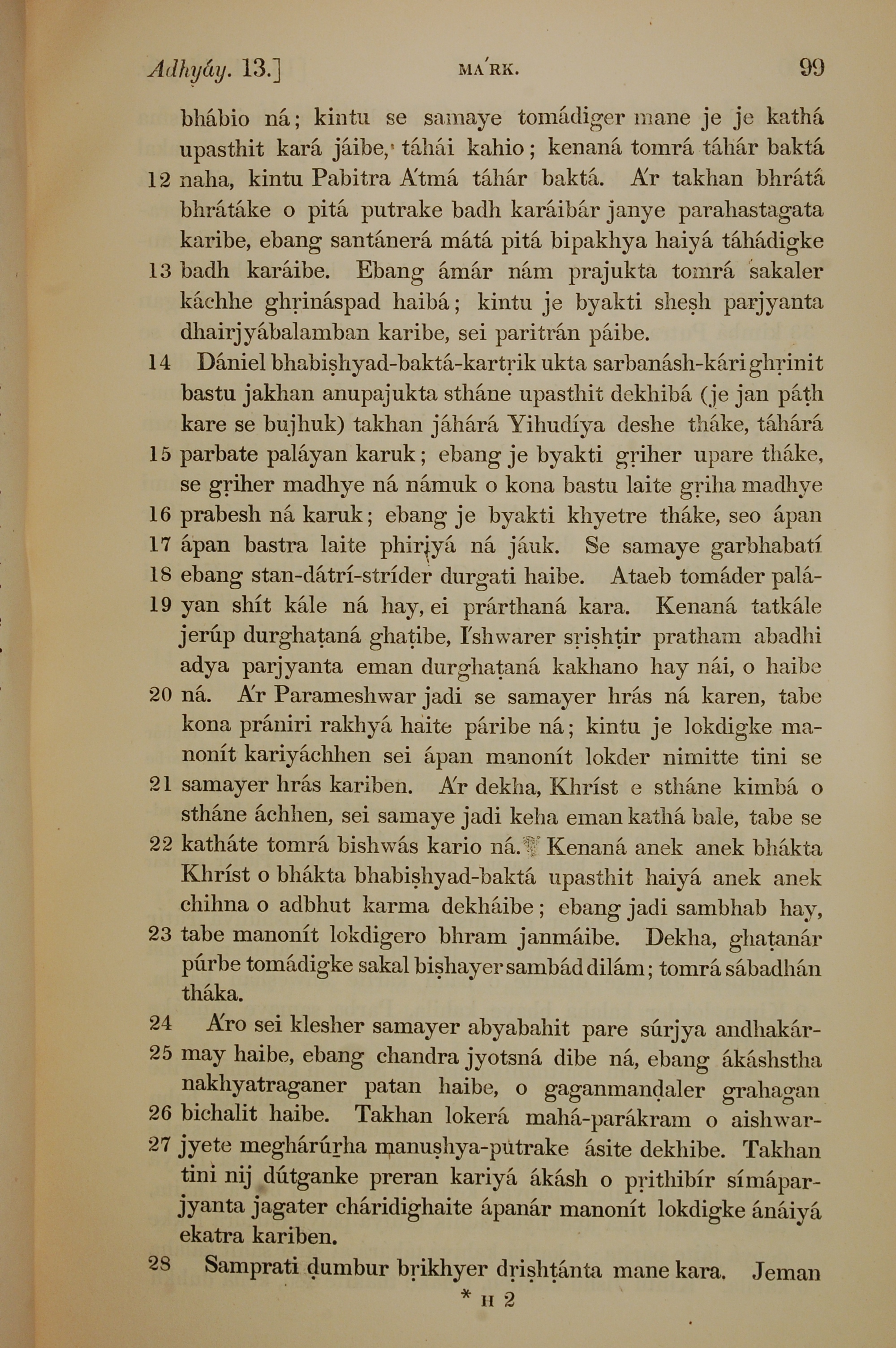 1839年孟加拉语新约全书 马可福音 13 章 12 节到 13 章 28 节