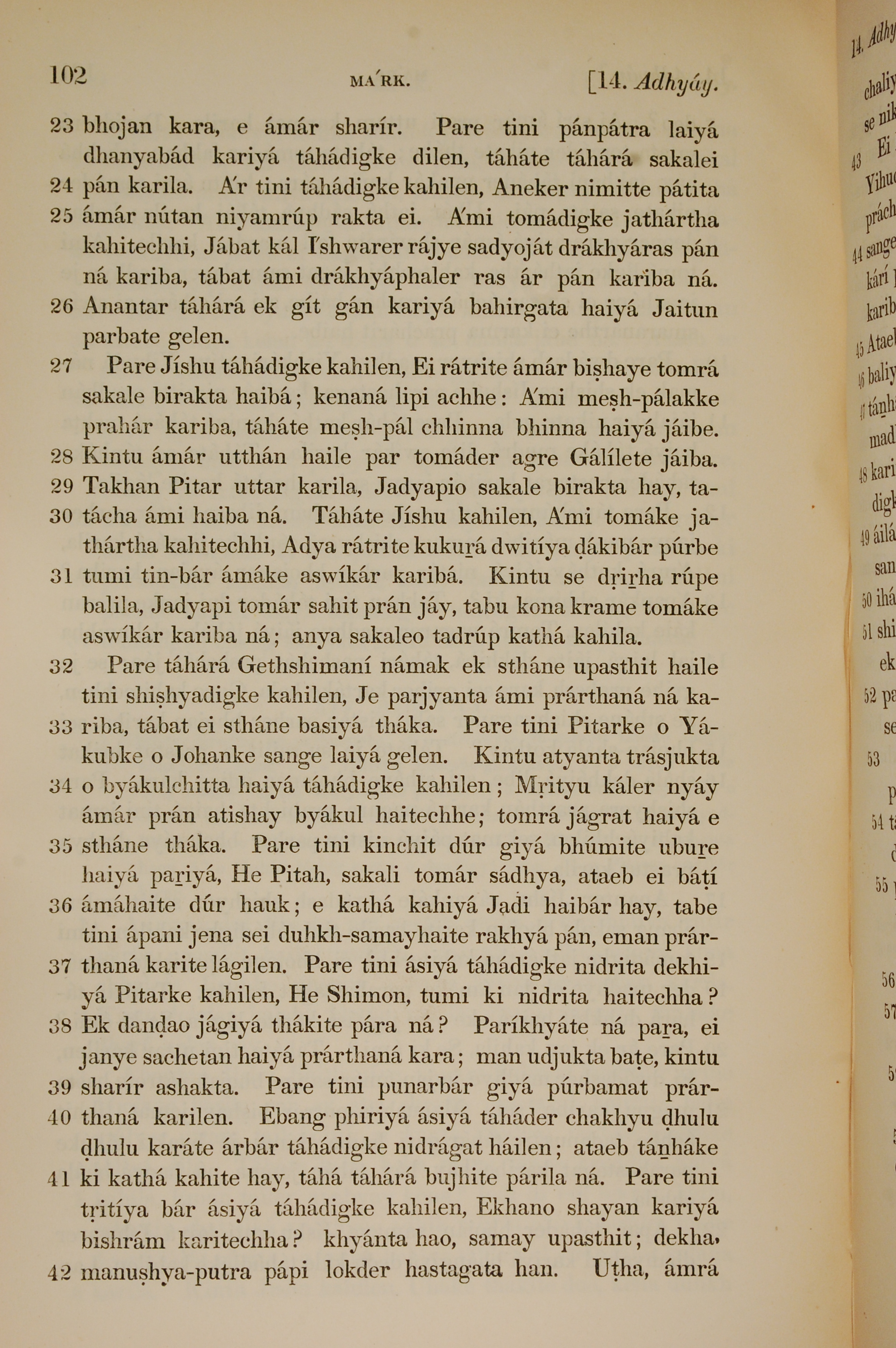 1839年孟加拉语新约全书 马可福音 14 章 23 节到 14 章 42 节