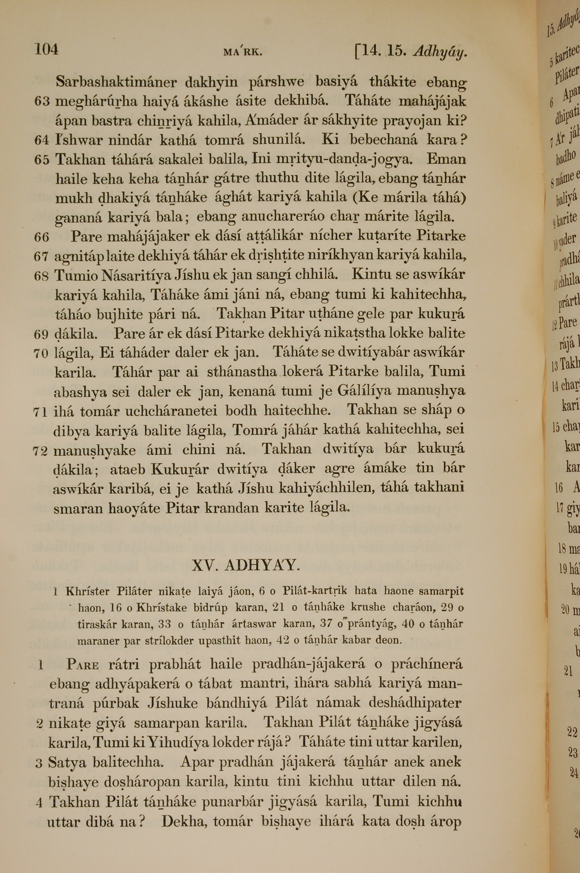 1839年孟加拉语新约全书 马可福音 14 章 63 节到 15 章 4 节