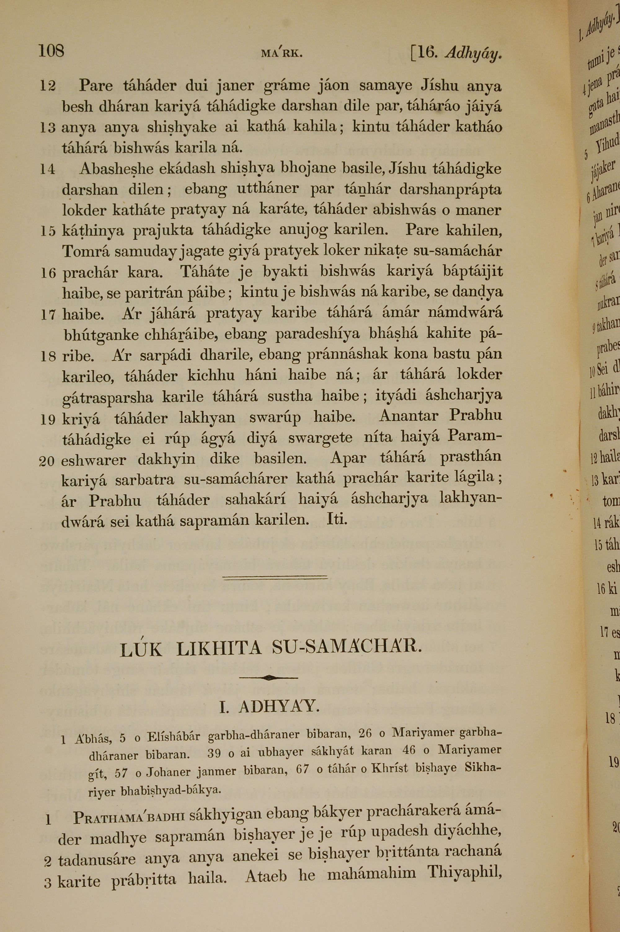 1839年孟加拉语新约全书 路加福音 1 章 1 节到 1 章 3 节