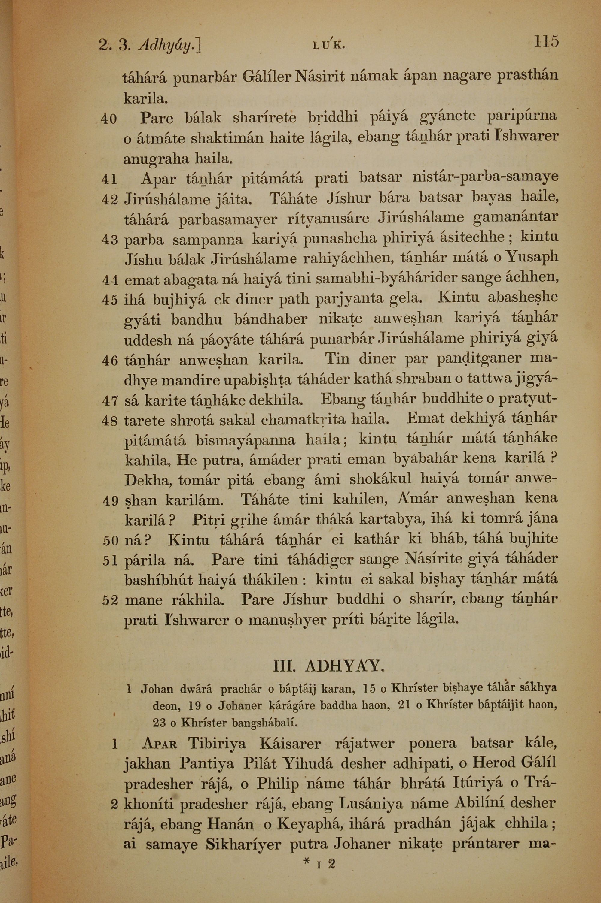 1839年孟加拉语新约全书 路加福音 2 章 40 节到 3 章 2 节