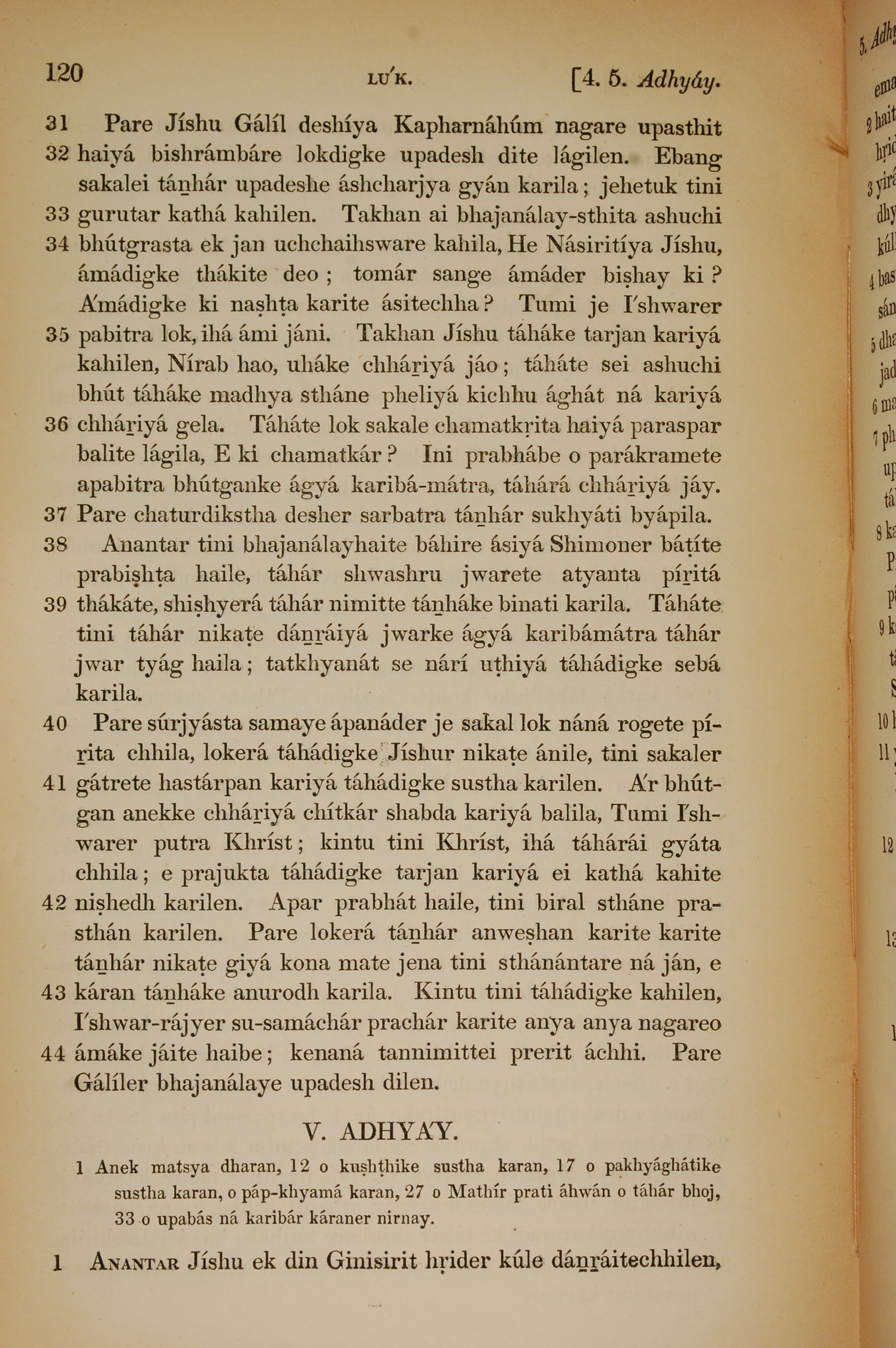 1839年孟加拉语新约全书 路加福音 4 章 31 节到 5 章 1 节