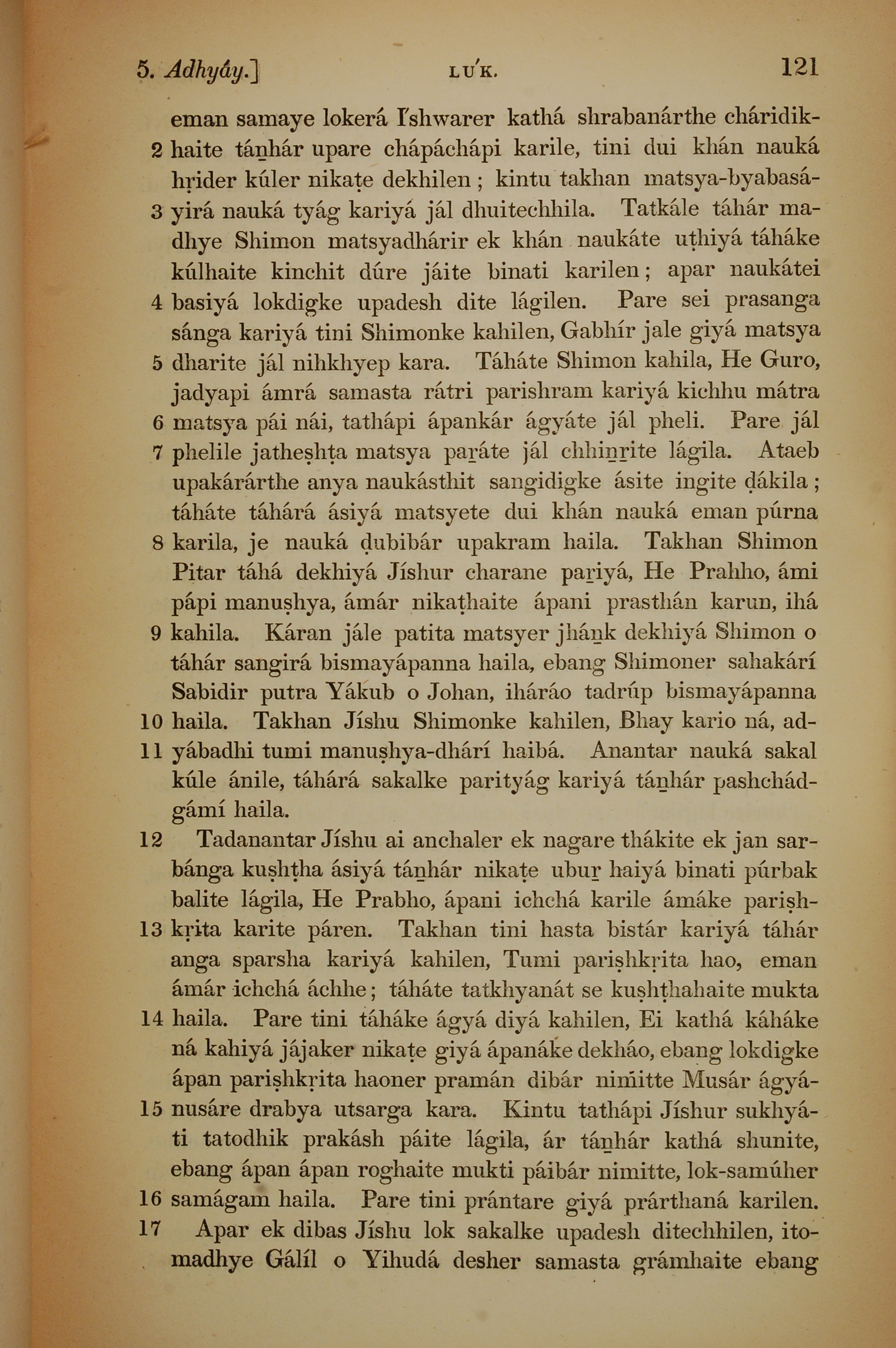 1839年孟加拉语新约全书 路加福音 5 章 2 节到 5 章 17 节
