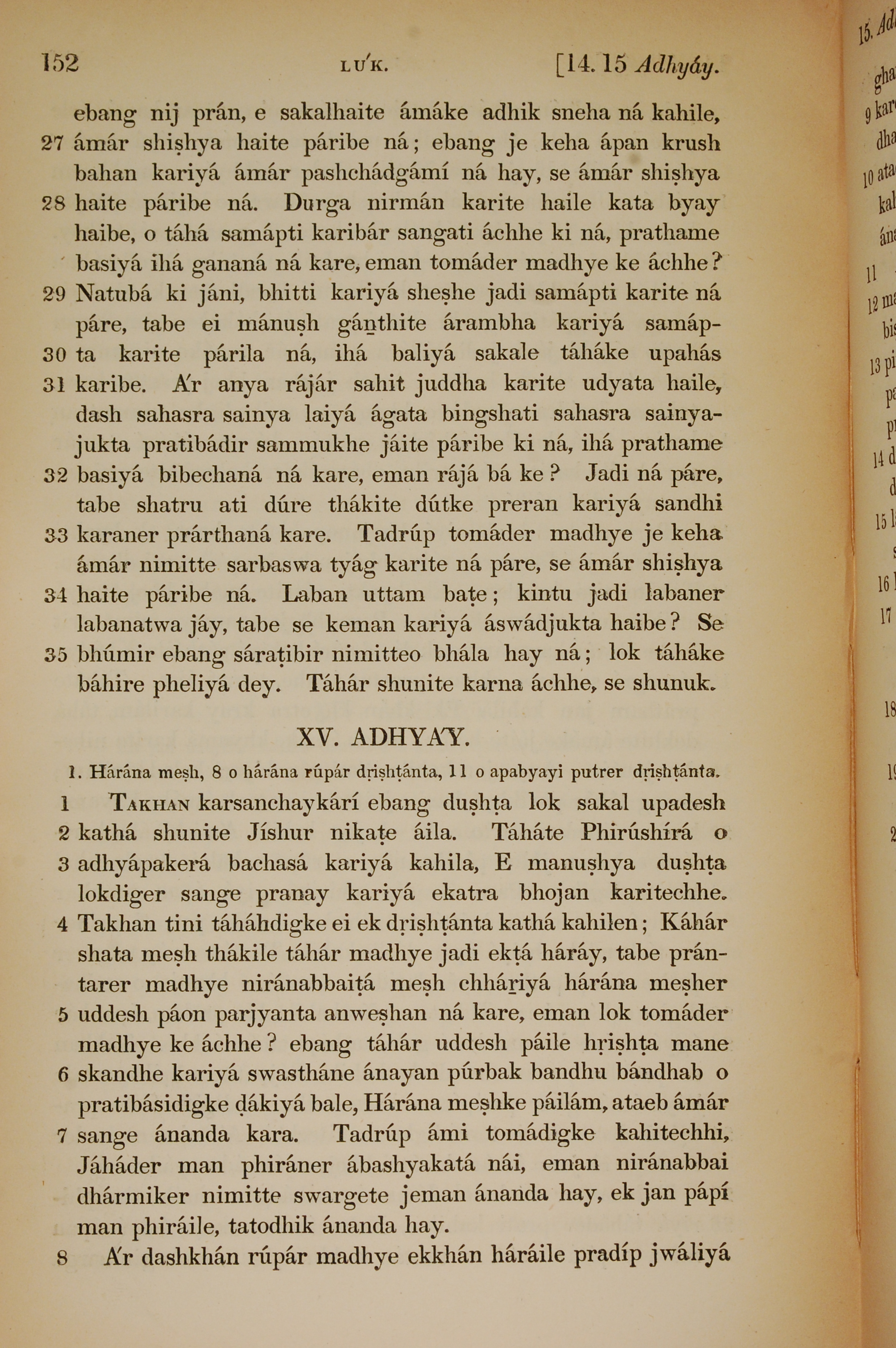 1839年孟加拉语新约全书 路加福音 14 章 27 节到 15 章 8 节