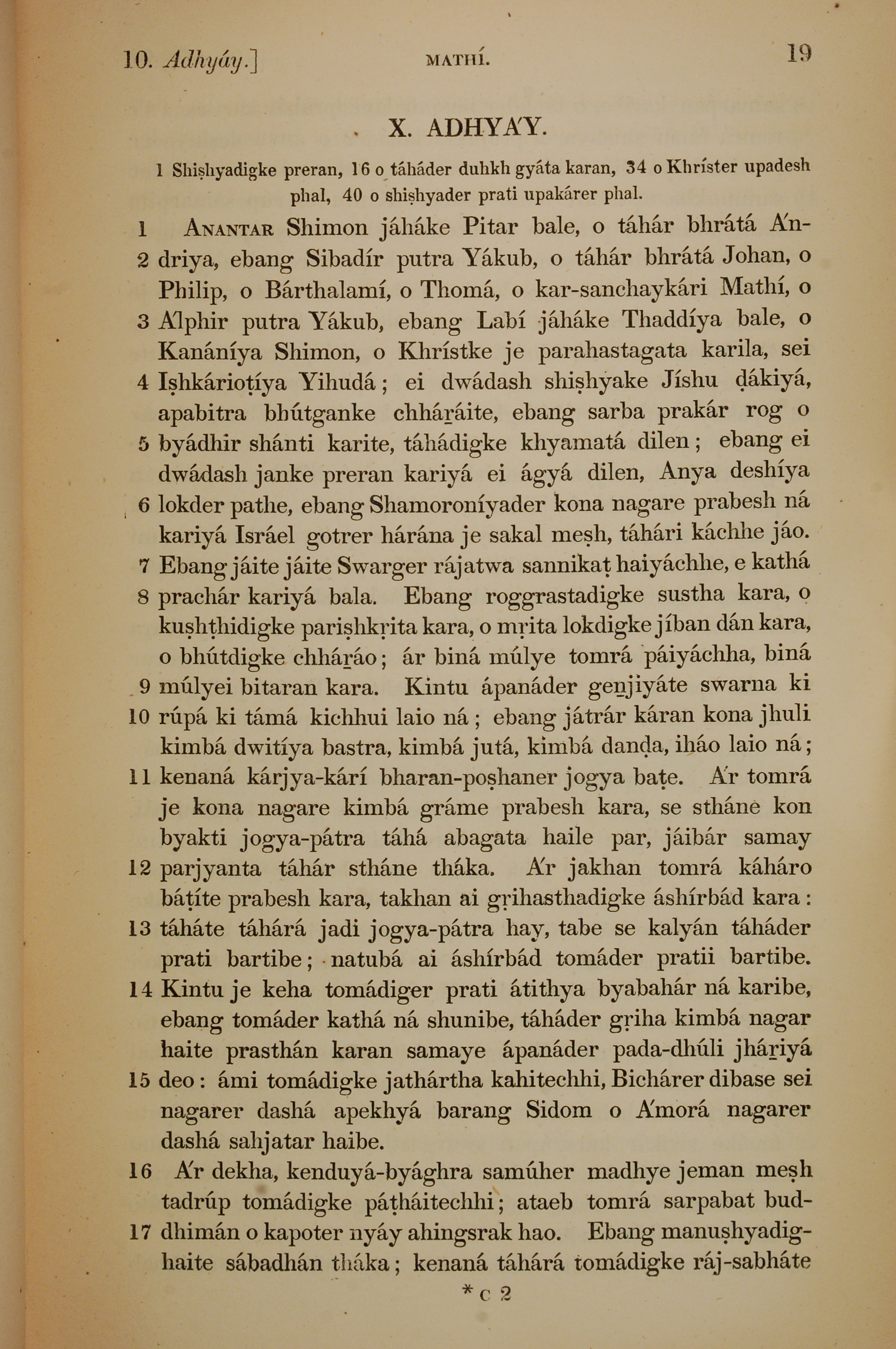 1839年孟加拉语新约全书 马太福音 10 章 1 节到 10 章 17 节