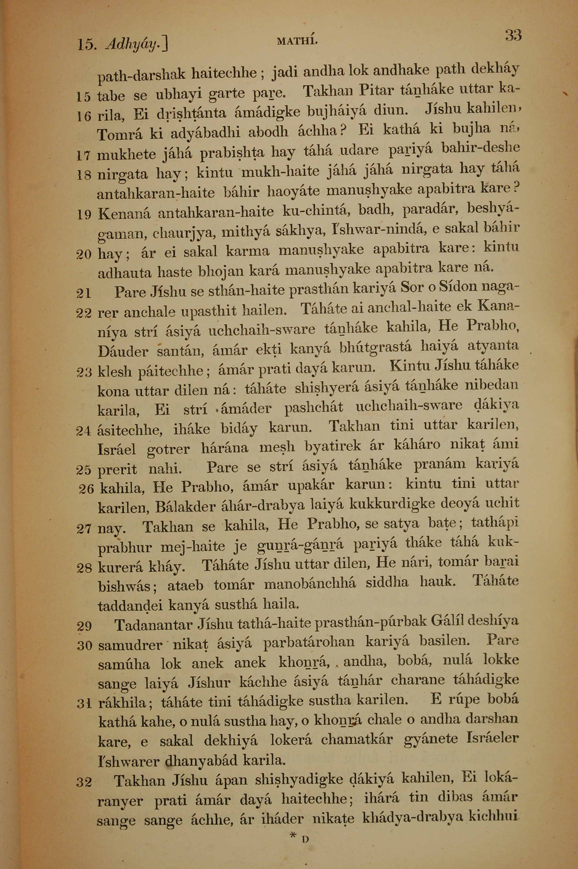 1839年孟加拉语新约全书 马太福音 15 章 15 节到 15 章 32 节
