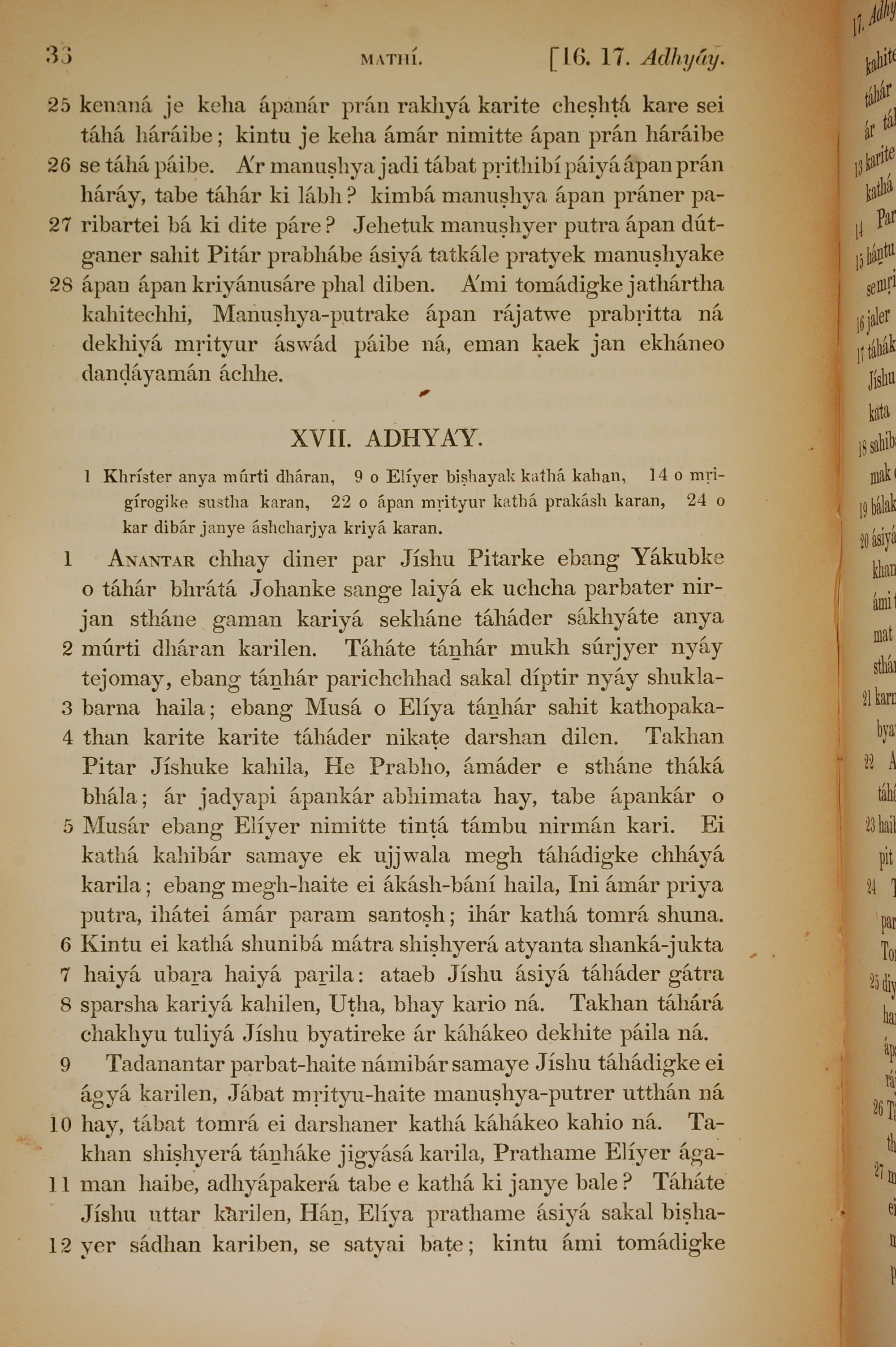 1839年孟加拉语新约全书 马太福音 16 章 25 节到 17 章 12 节