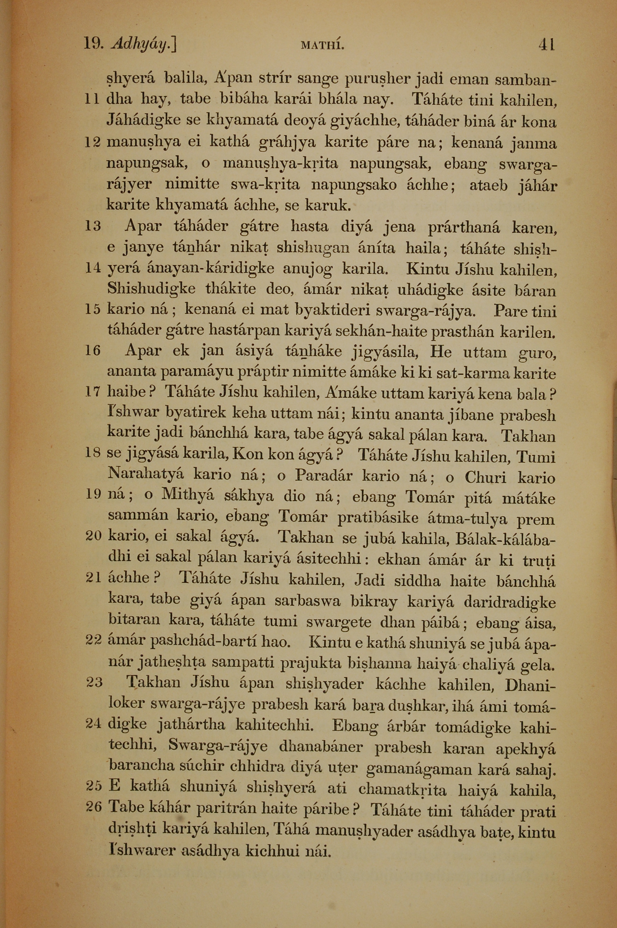 1839年孟加拉语新约全书 马太福音 19 章 11 节到 19 章 26 节