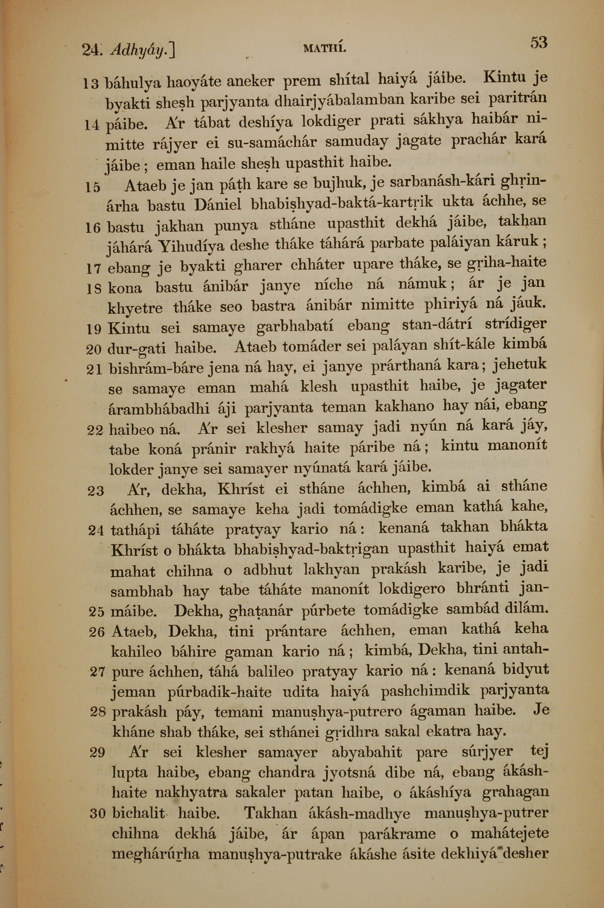 1839年孟加拉语新约全书 马太福音 24 章 13 节到 24 章 30 节