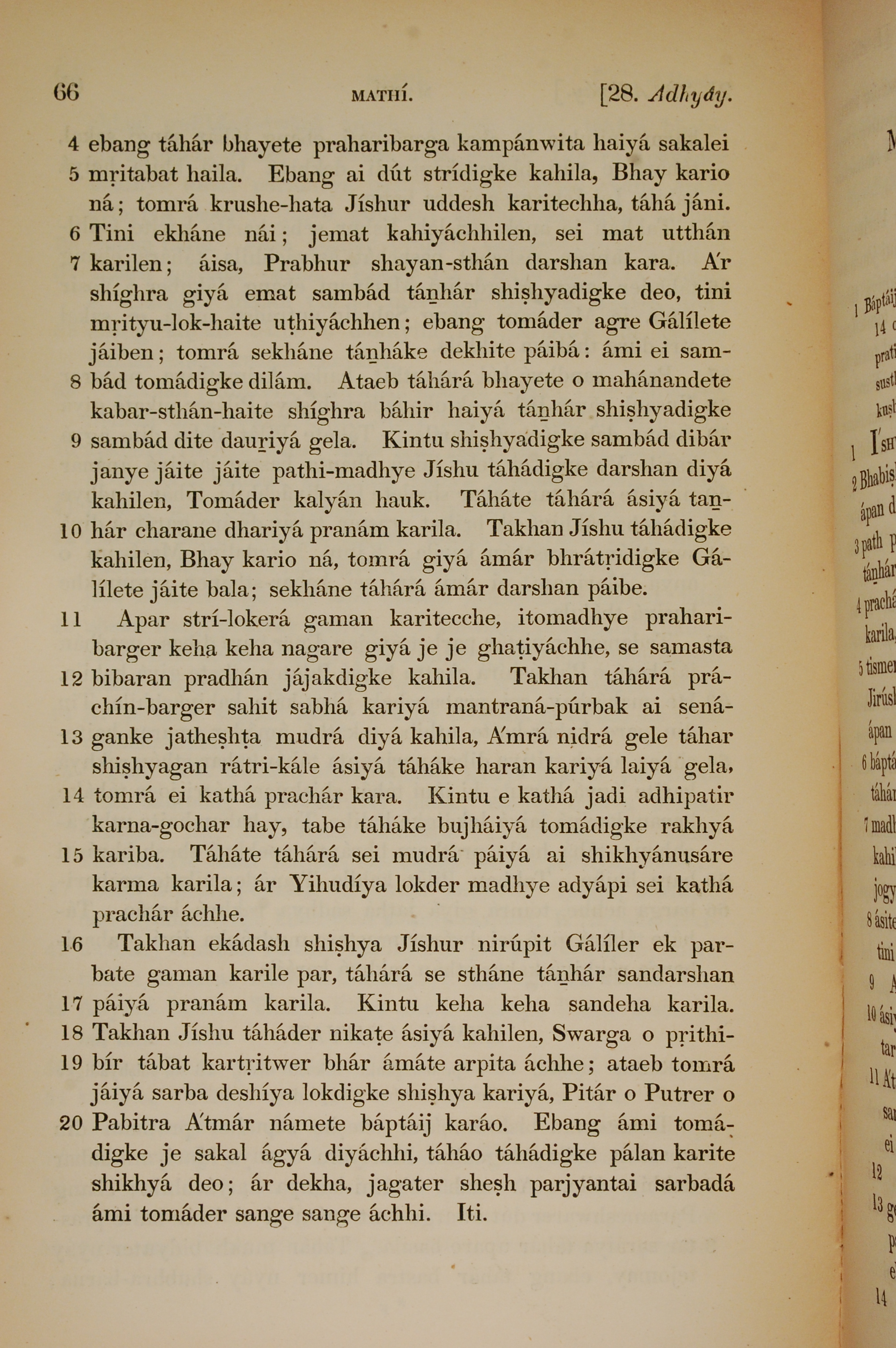 1839年孟加拉语新约全书 马太福音 28 章 4 节到 28 章 20 节
