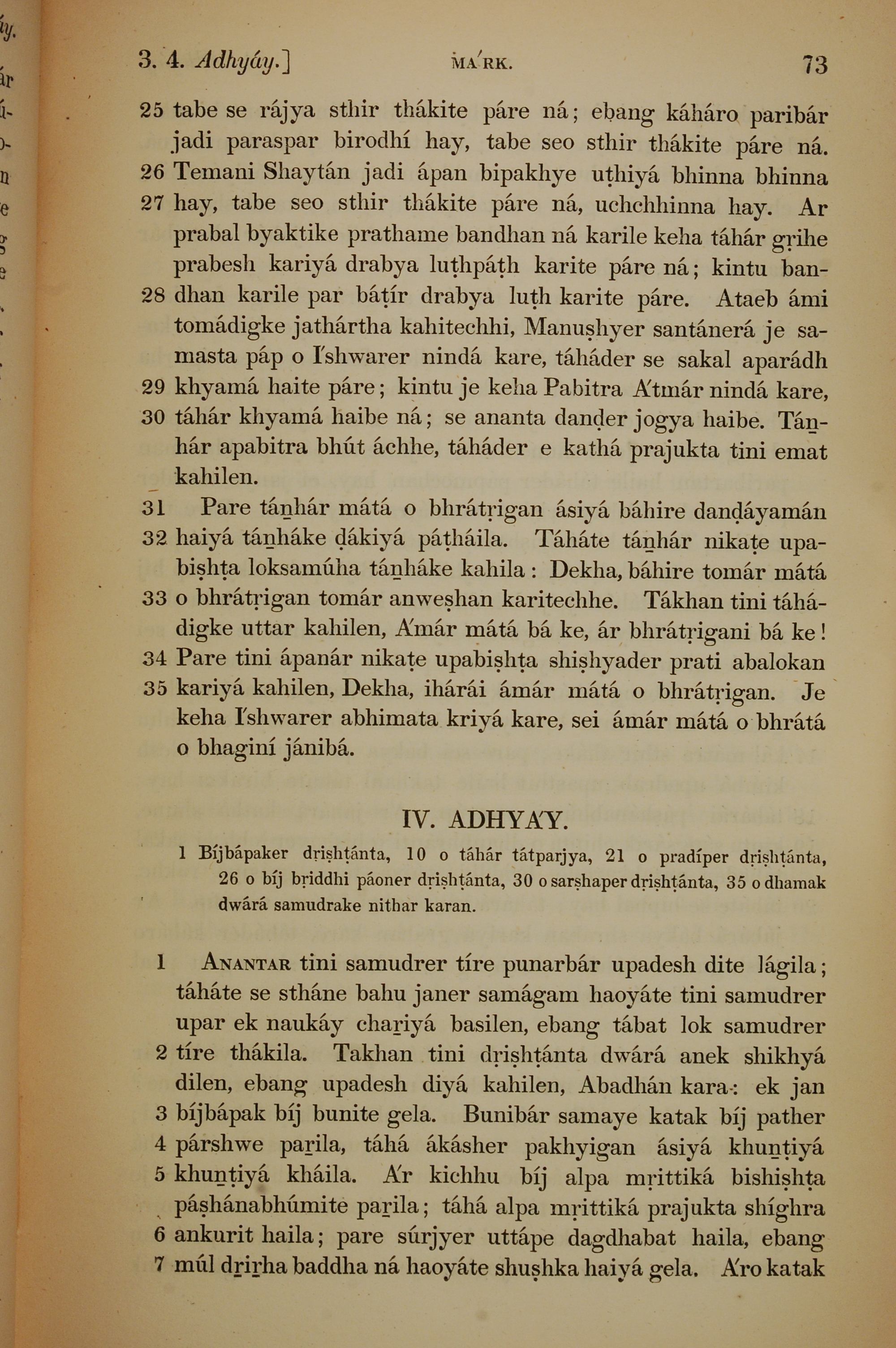 1839年孟加拉语新约全书 马可福音 3 章 25 节到 4 章 7 节