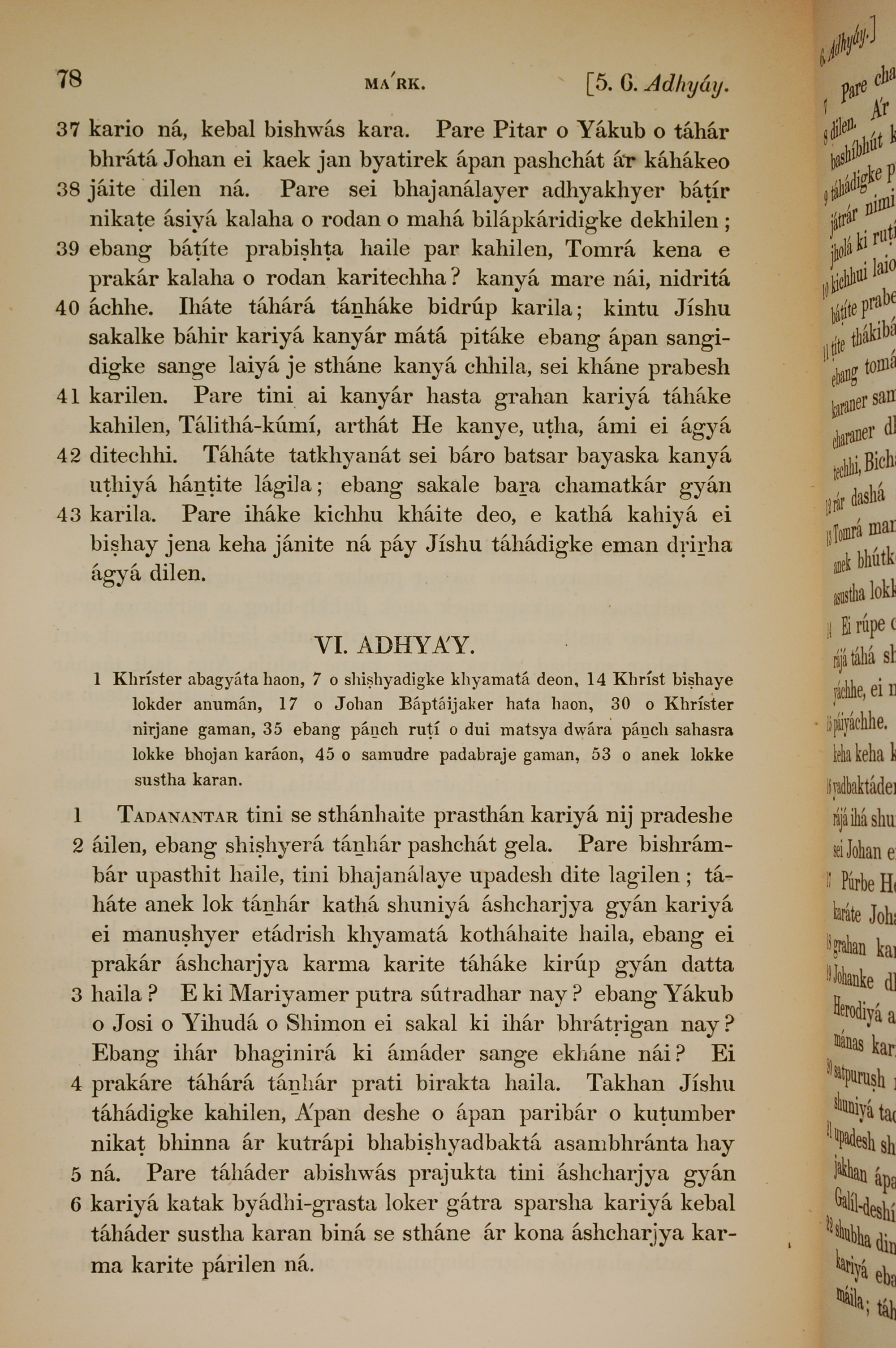 1839年孟加拉语新约全书 马可福音 5 章 37 节到 6 章 6 节