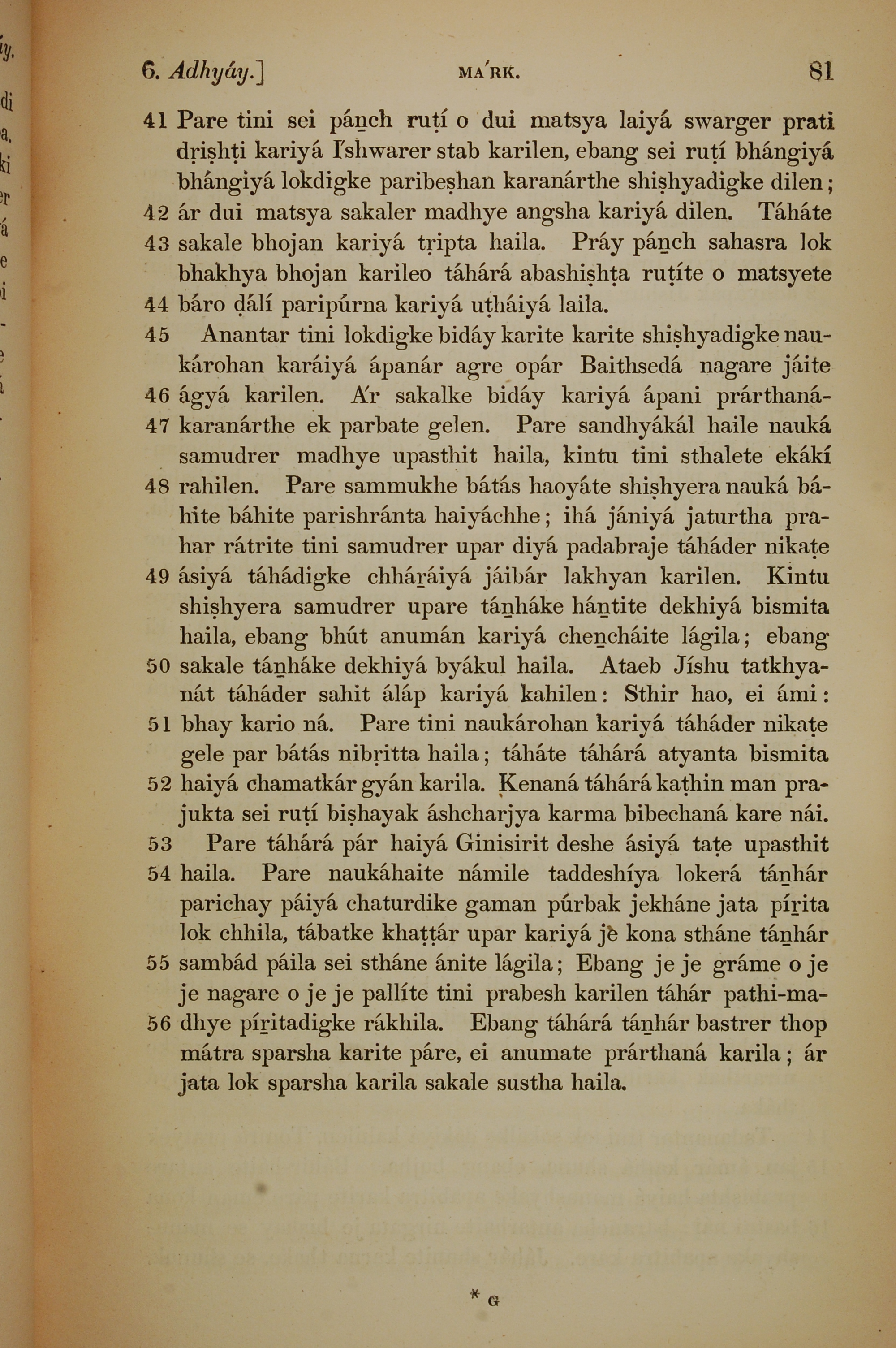 1839年孟加拉语新约全书 马可福音 6 章 41 节到 6 章 56 节