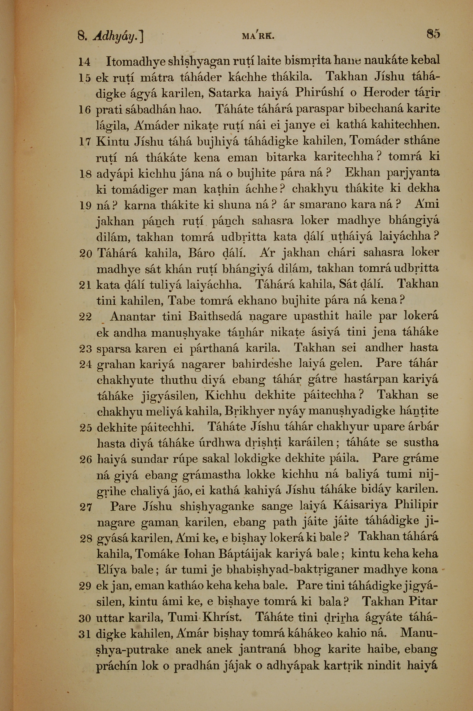 1839年孟加拉语新约全书 马可福音 8 章 14 节到 8 章 31 节