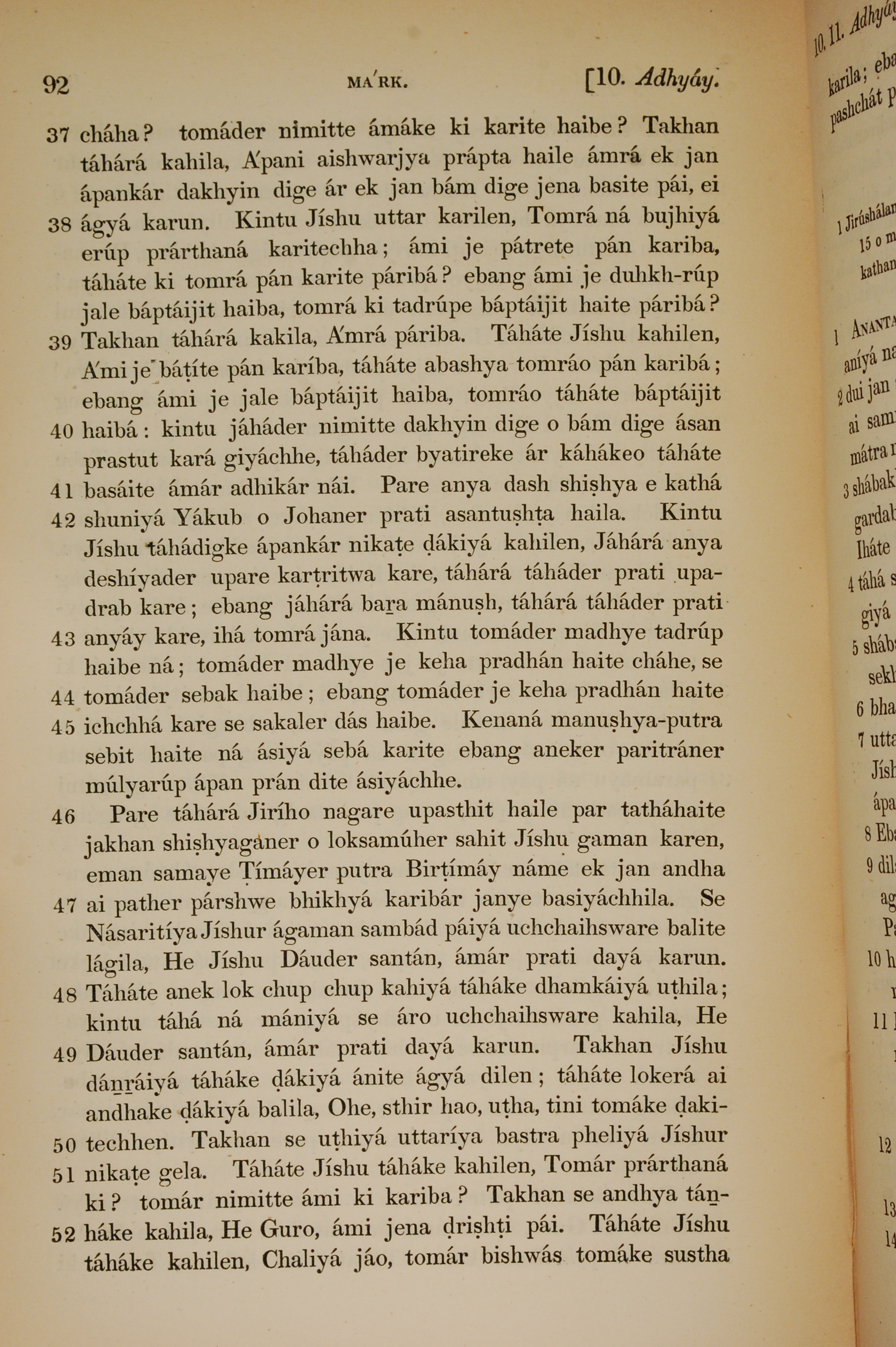 1839年孟加拉语新约全书 马可福音 10 章 37 节到 10 章 52 节