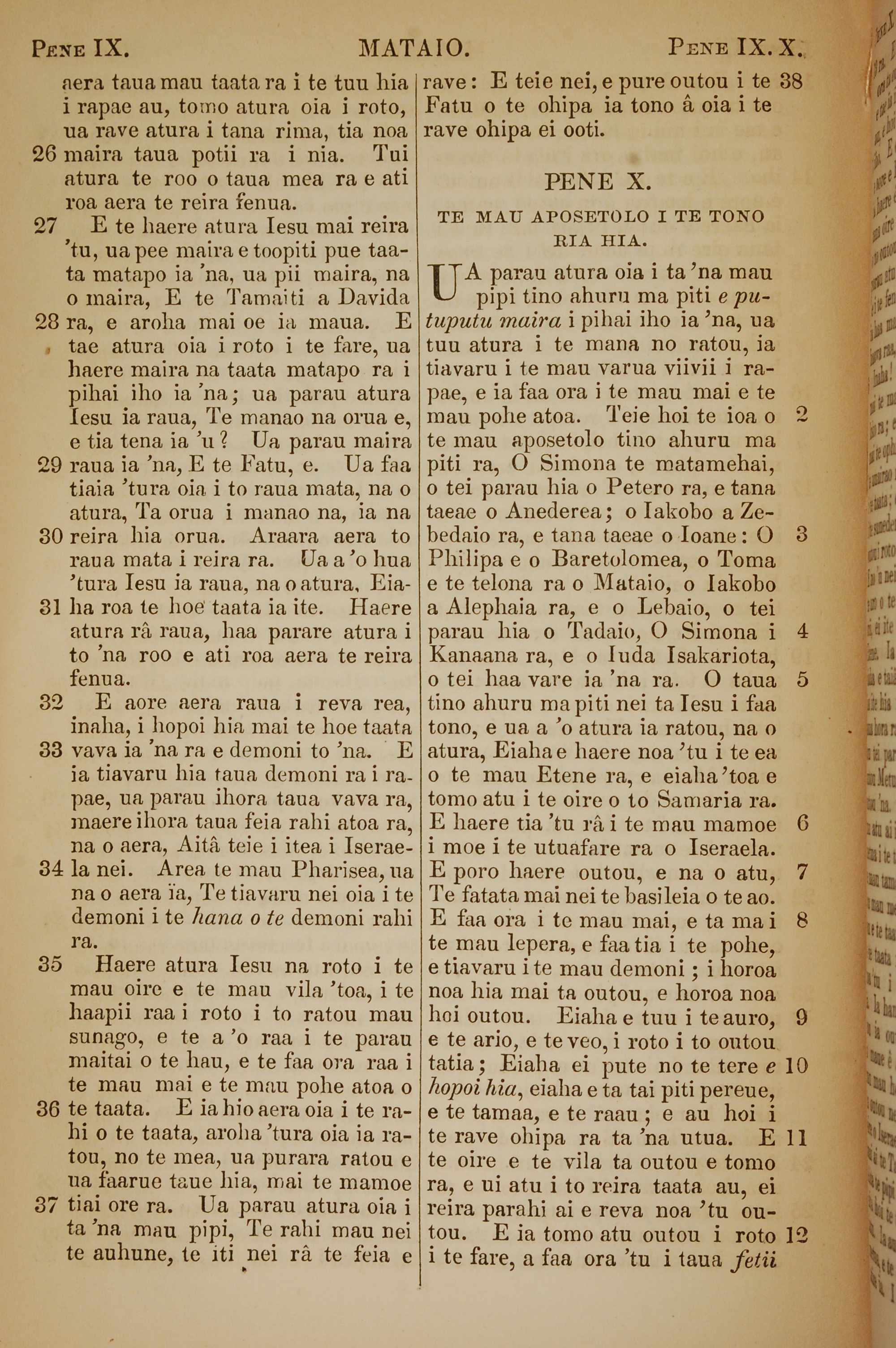 1853年塔希提语新约全书 马太福音 9 章 26 节到 10 章 12 节