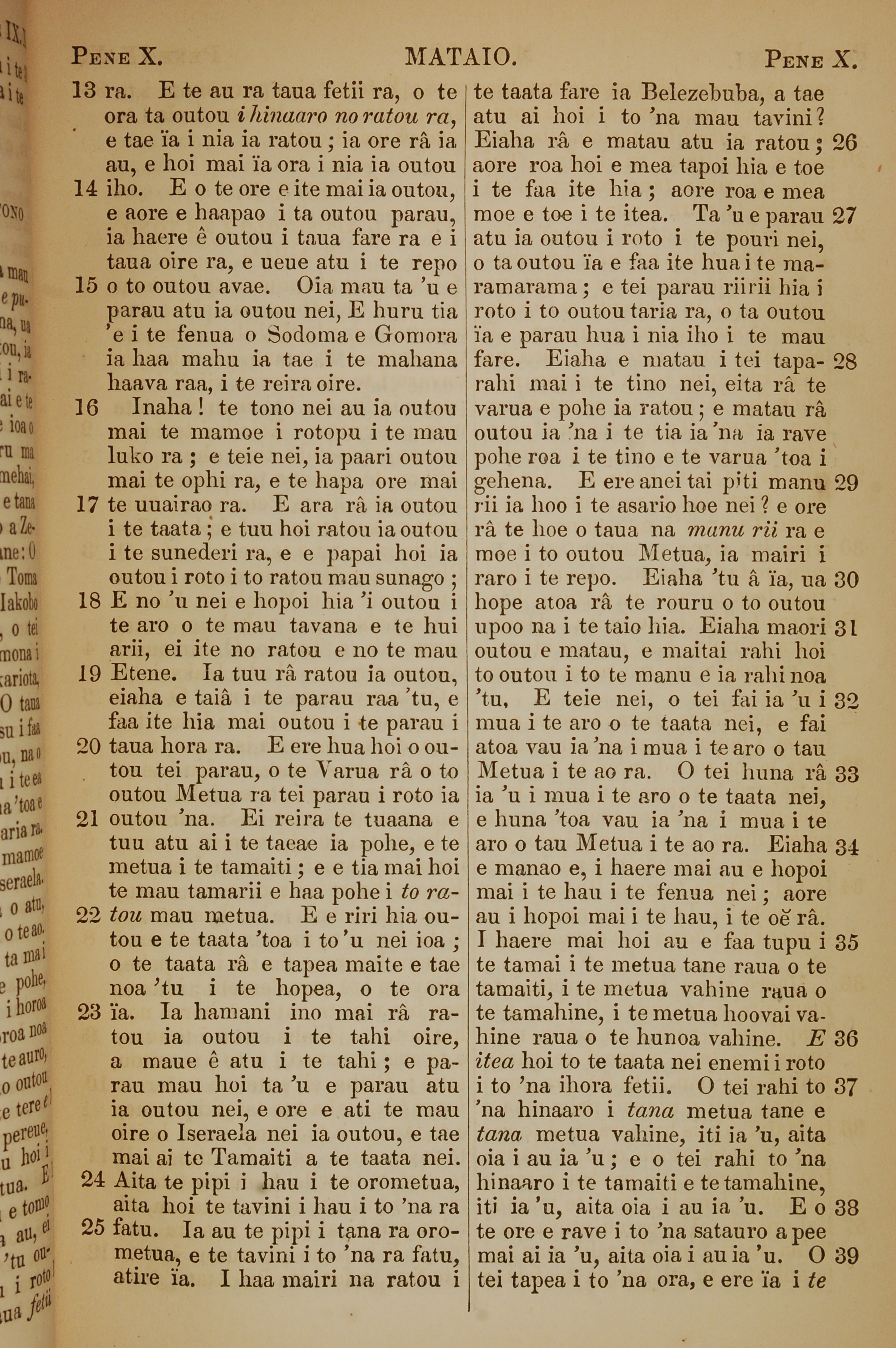1853年塔希提语新约全书 马太福音 10 章 13 节到 10 章 39 节