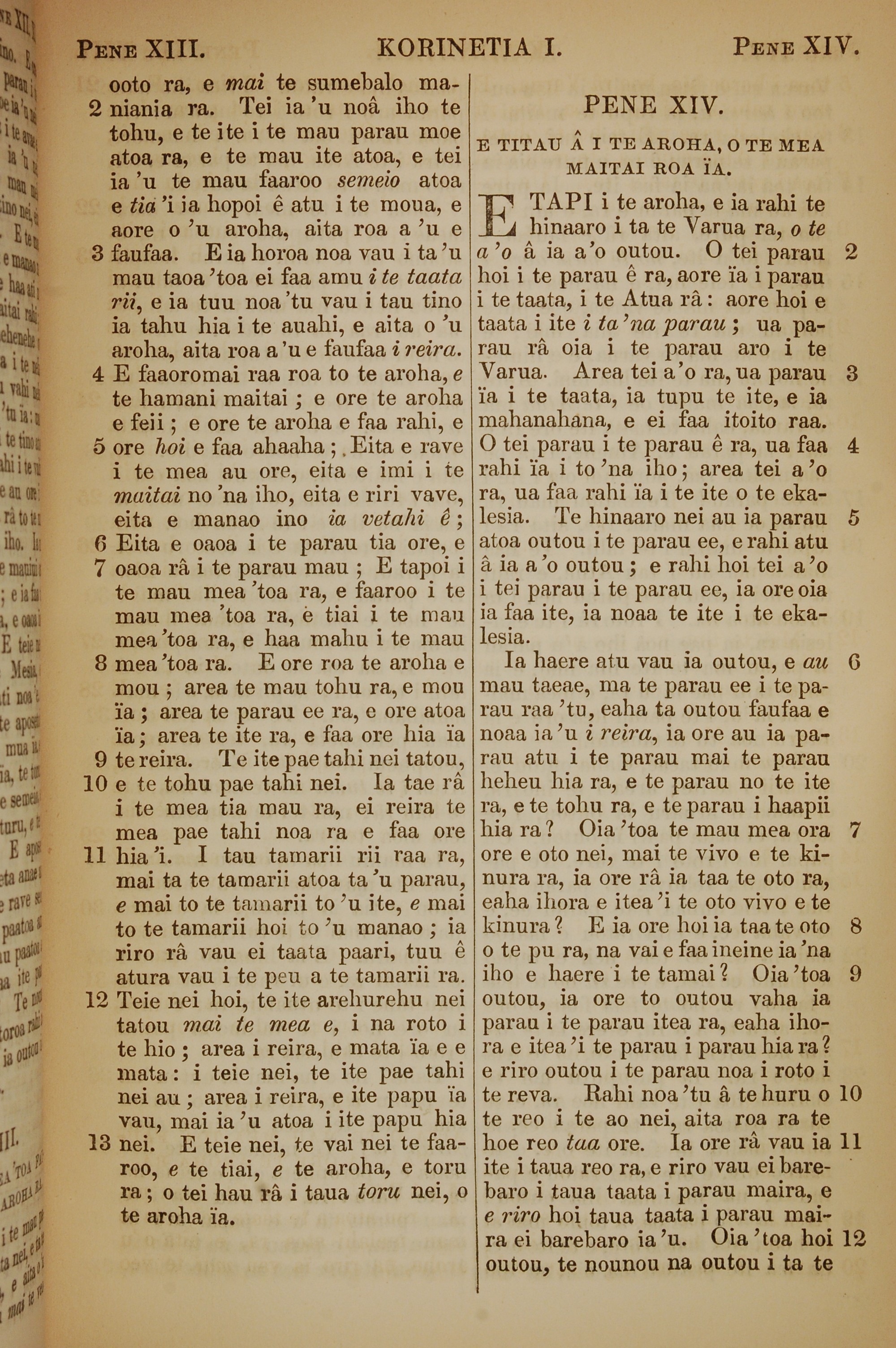 1853年塔希提语新约全书 哥林多前书 13 章 2 节到 14 章 12 节