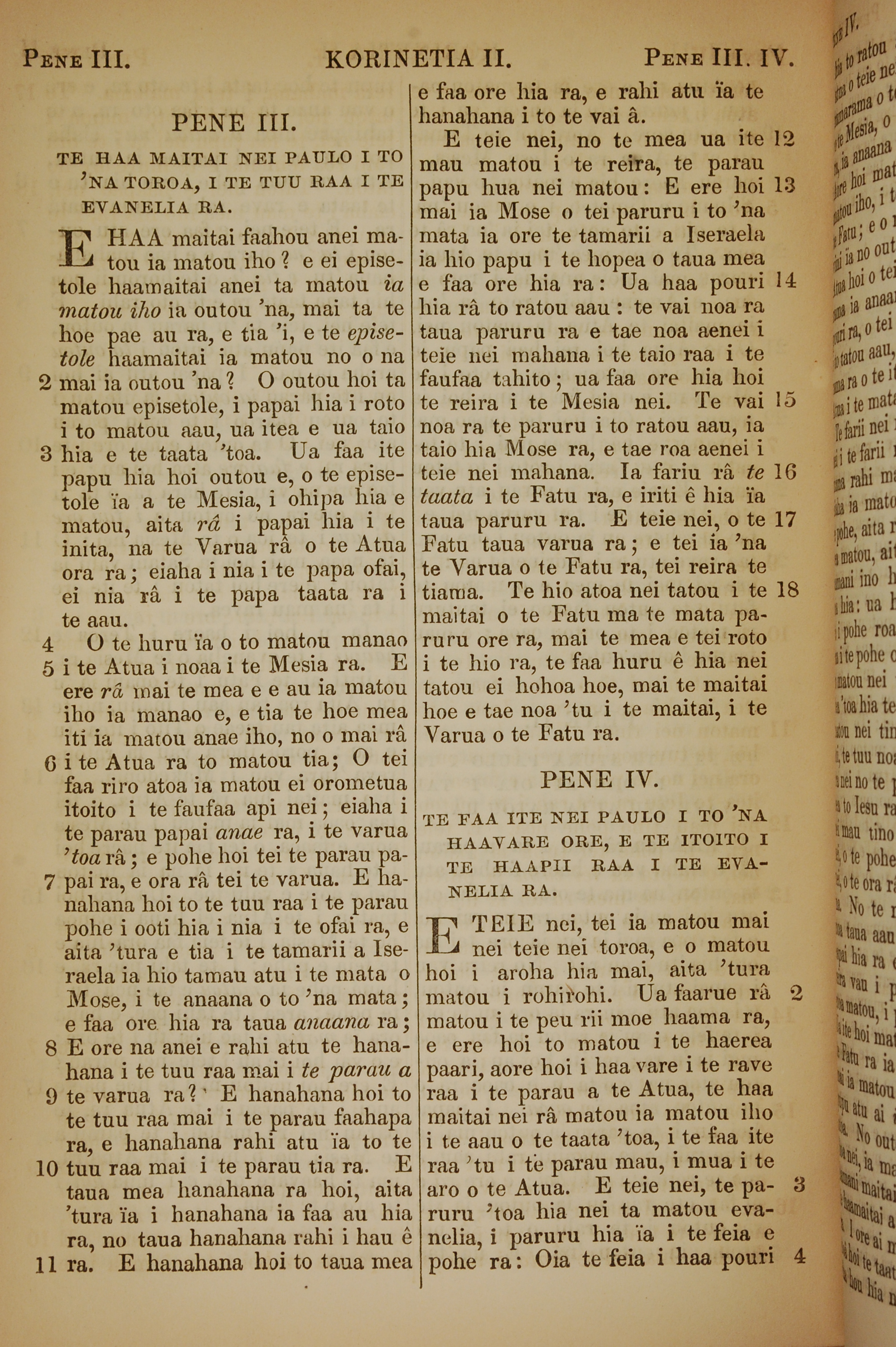 1853年塔希提语新约全书 哥林多后书 3 章 1 节到 4 章 4 节