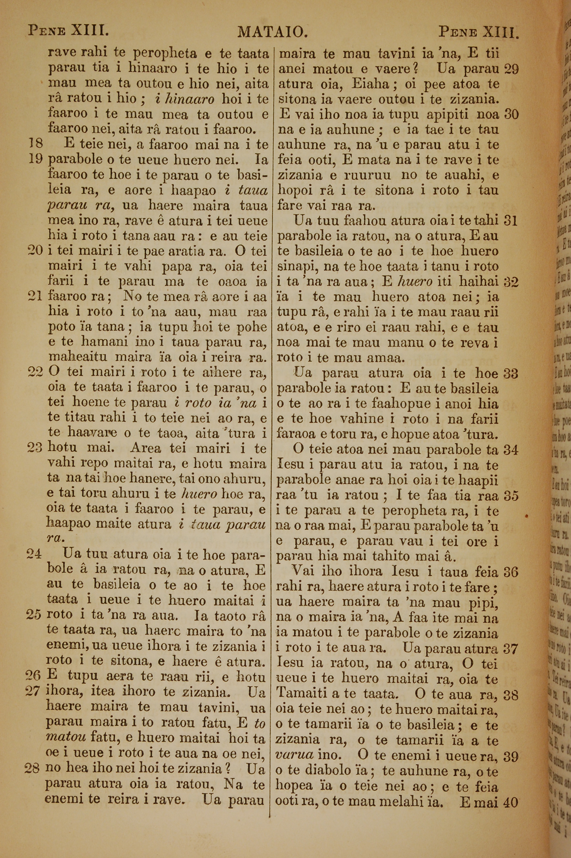 1853年塔希提语新约全书 马太福音 13 章 18 节到 13 章 40 节
