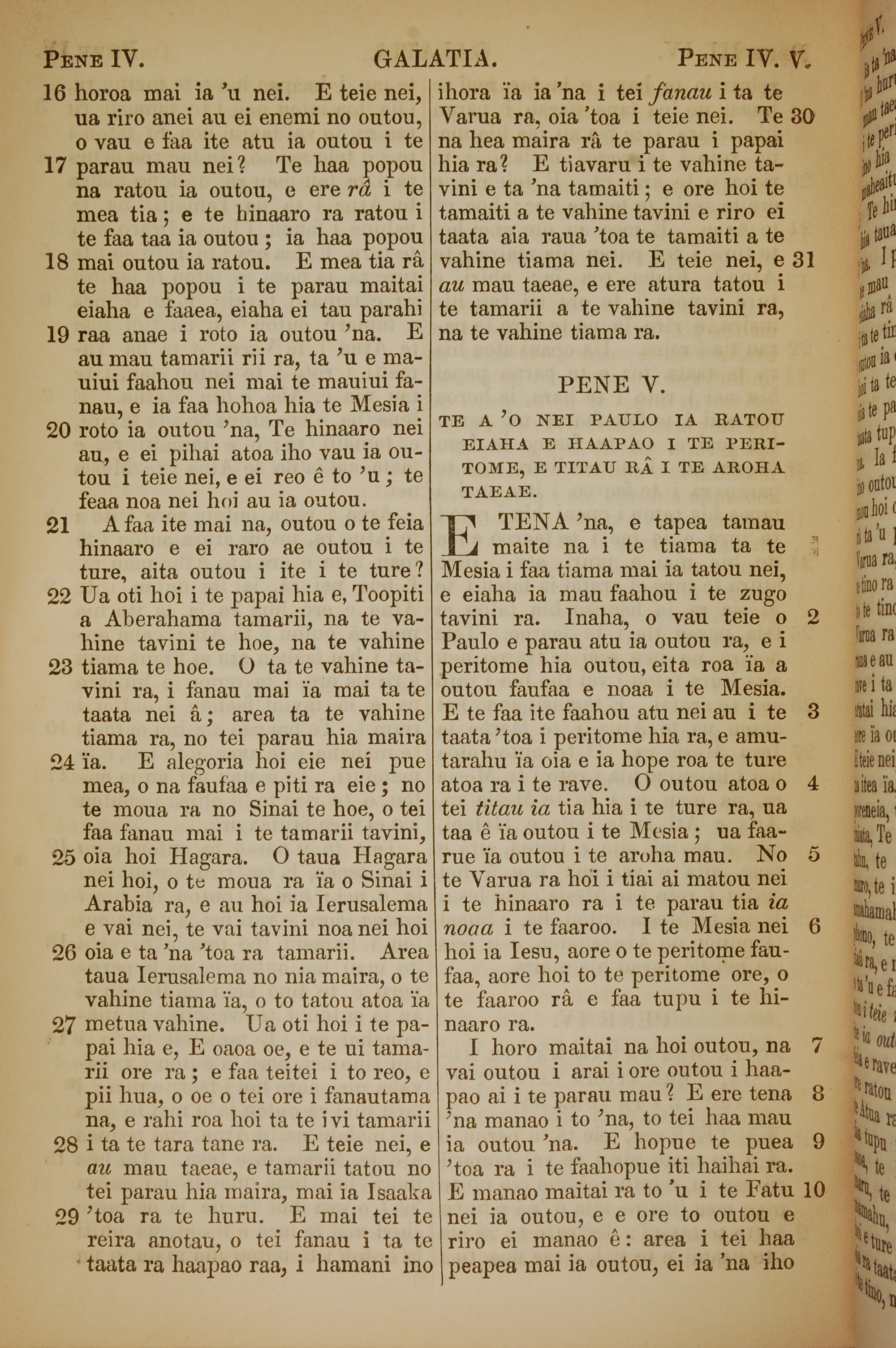 1853年塔希提语新约全书 加拉太书 4 章 16 节到 5 章 10 节