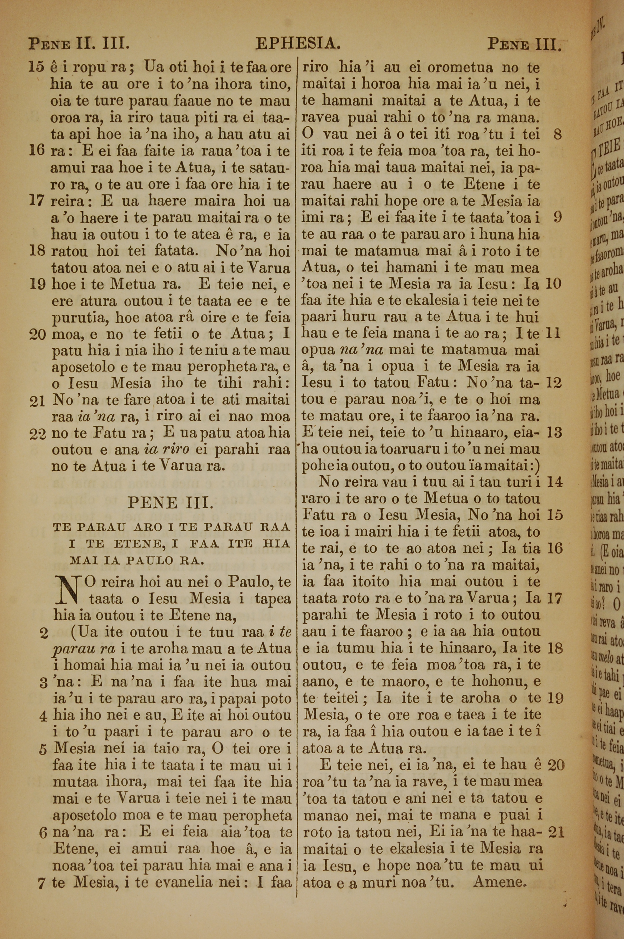 1853年塔希提语新约全书 以弗所书 2 章 15 节到 3 章 21 节