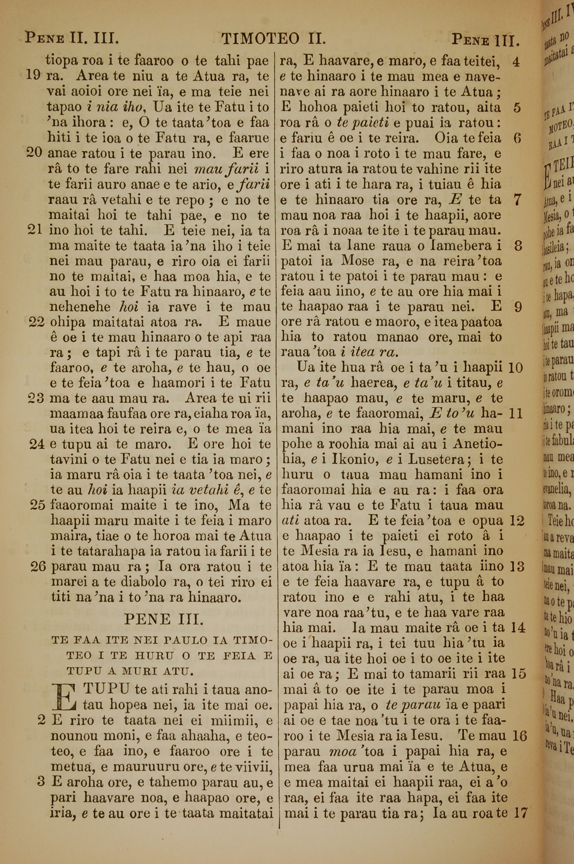 1853年塔希提语新约全书 提摩太后书 2 章 19 节到 3 章 17 节
