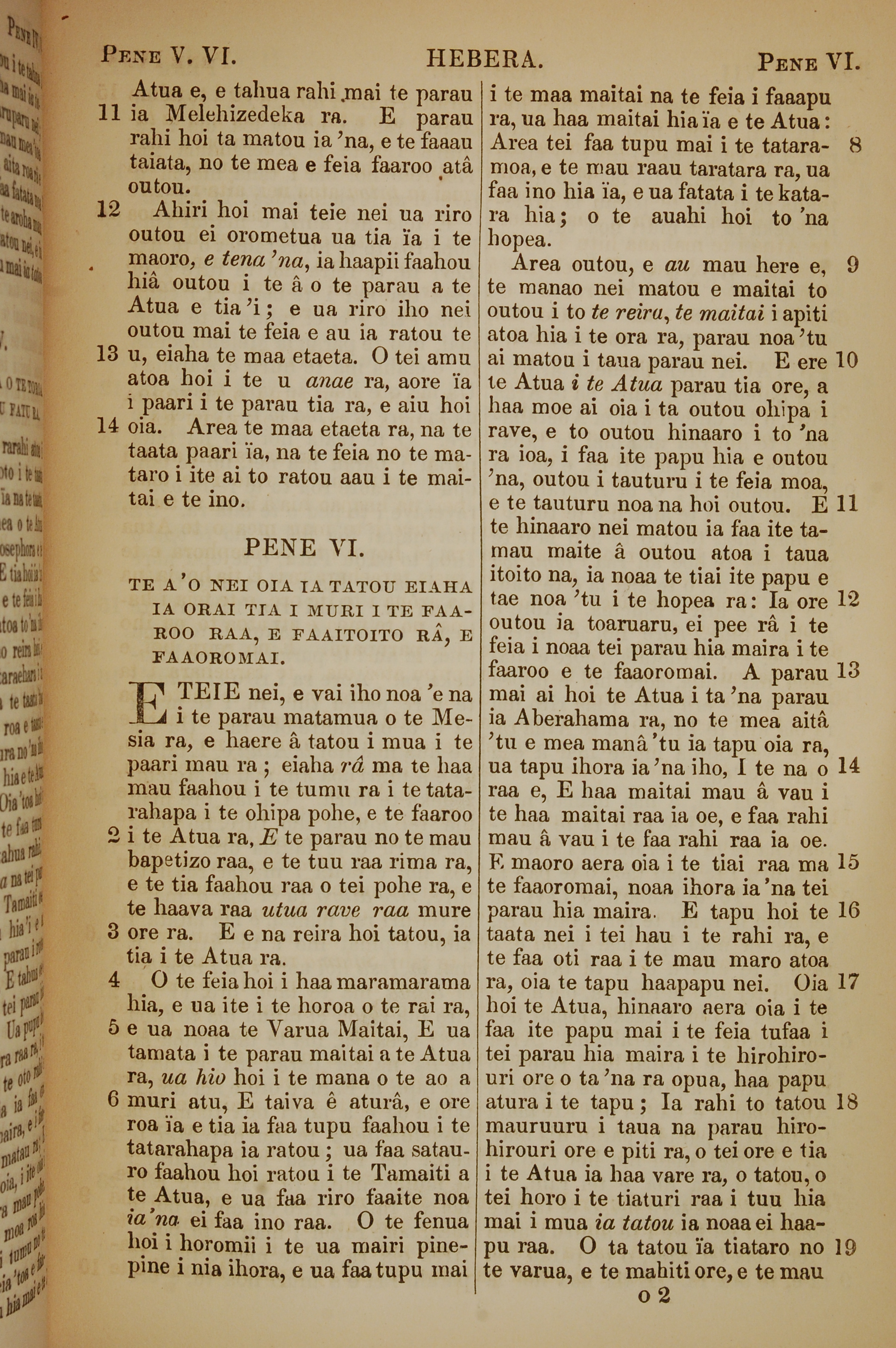 1853年塔希提语新约全书 希伯来书 5 章 11 节到 6 章 19 节