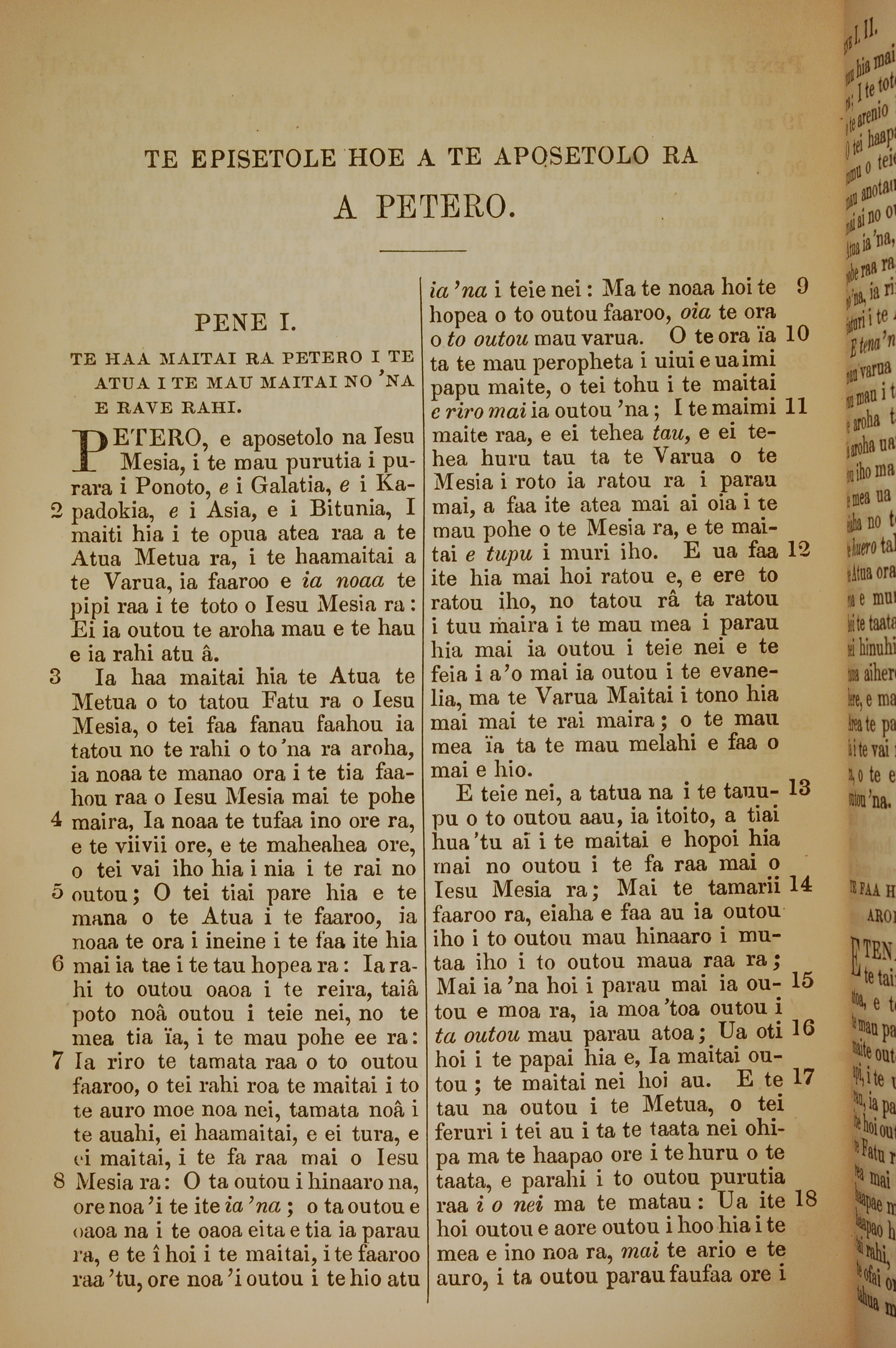 1853年塔希提语新约全书 彼得前书 1 章 1 节到 1 章 18 节