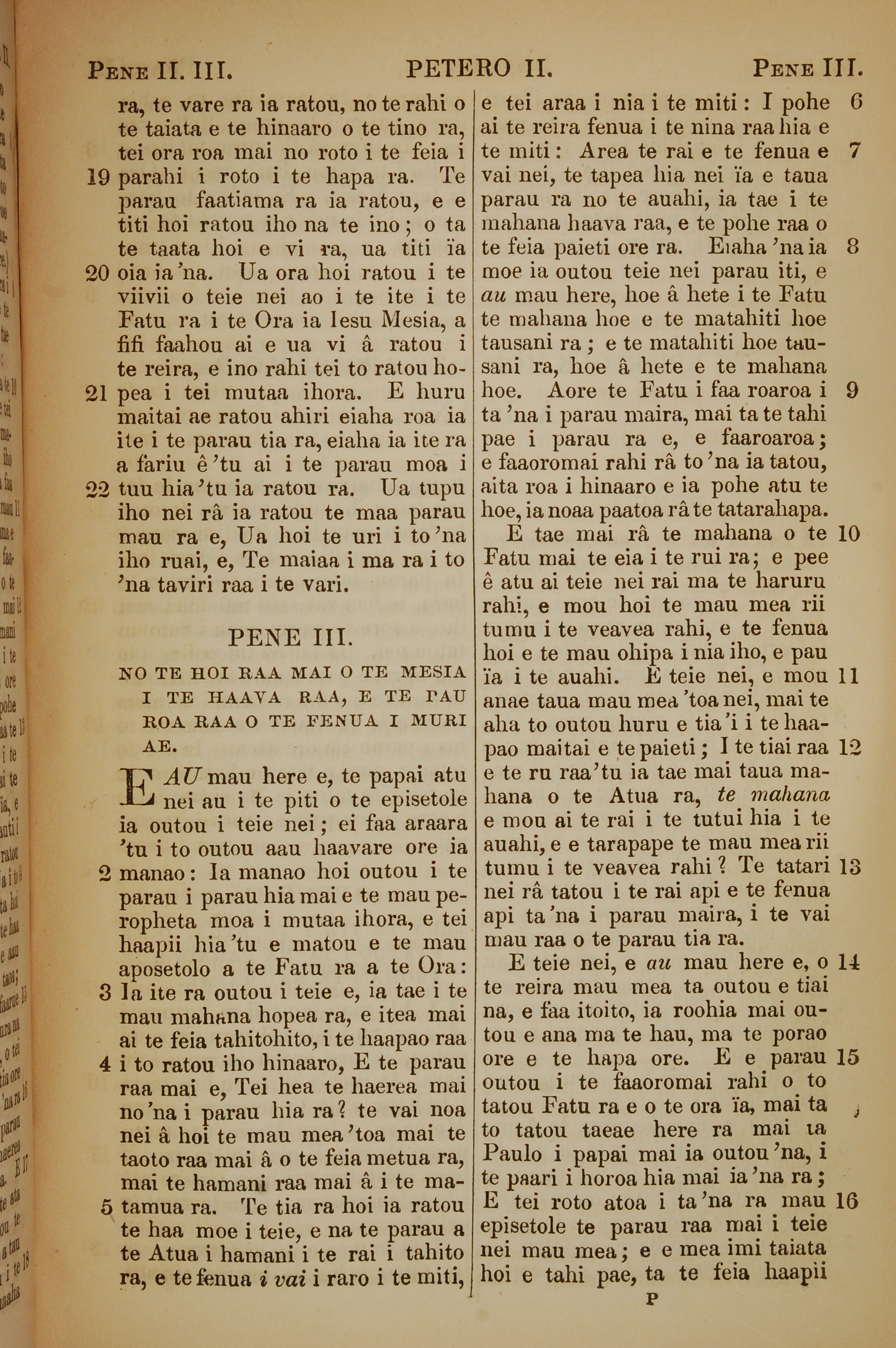 1853年塔希提语新约全书 彼得后书 2 章 19 节到 3 章 16 节