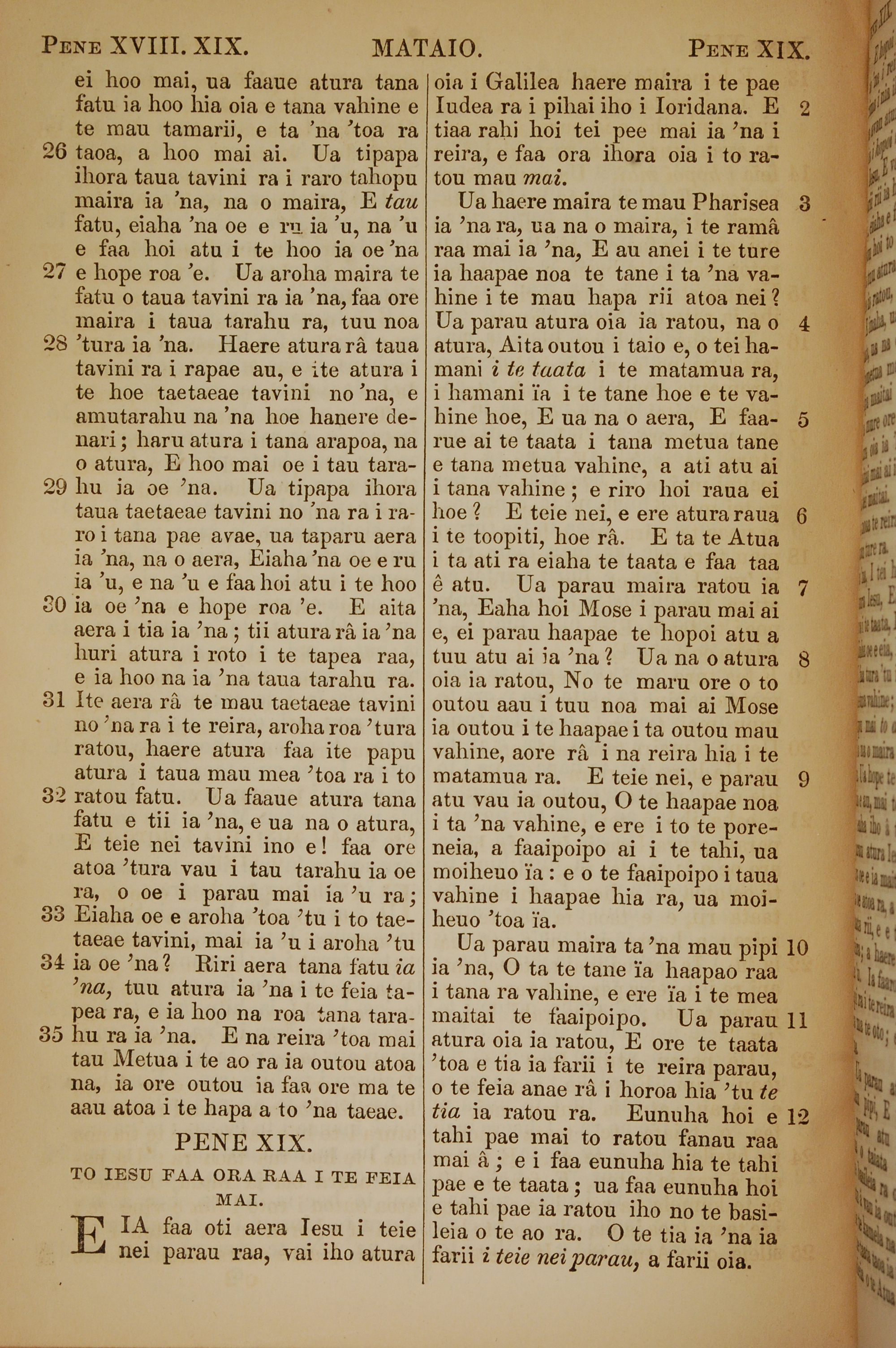 1853年塔希提语新约全书 马太福音 18 章 26 节到 19 章 12 节